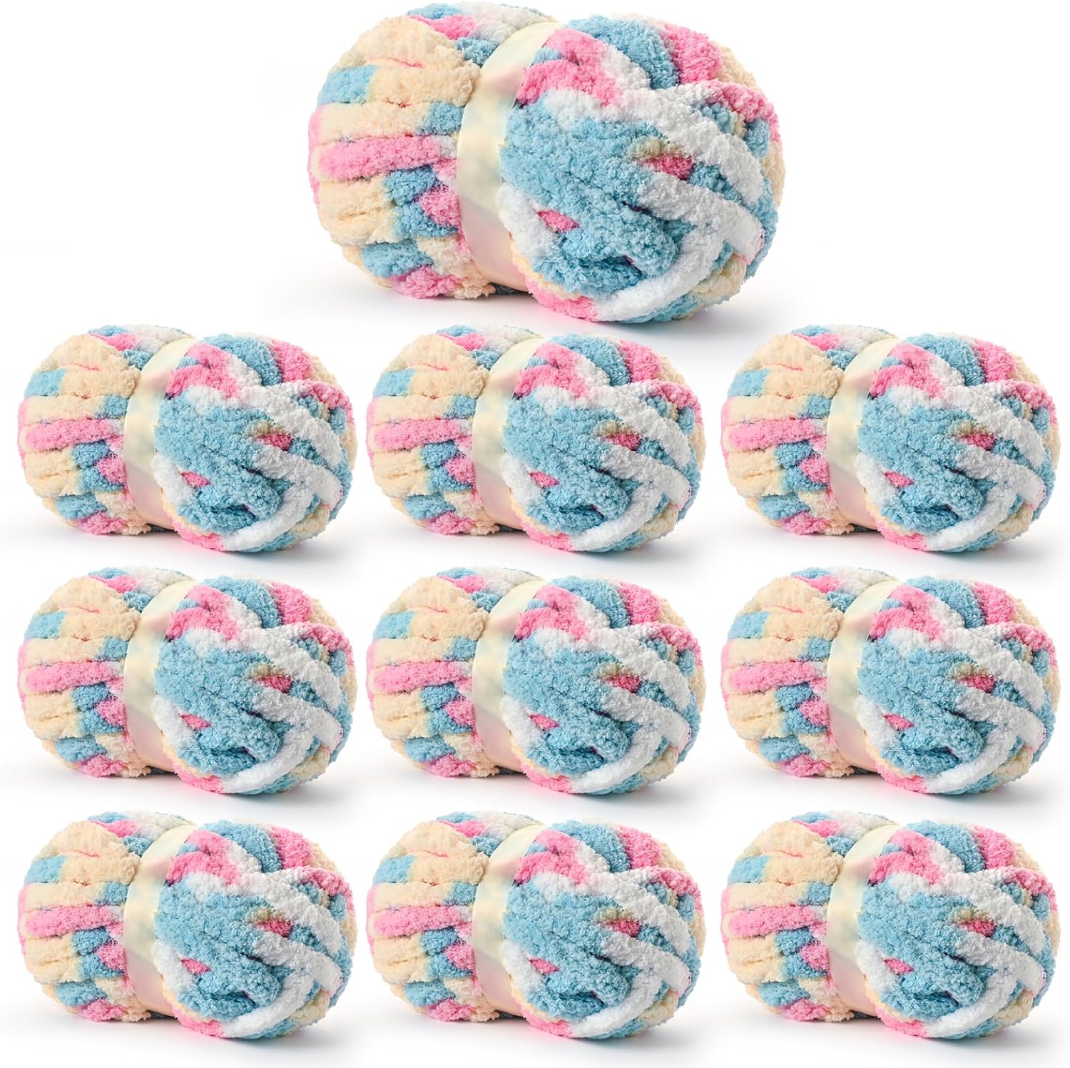 This super-bulky variegated yarn comes in a variety of color combinations, allowing you to choose different yarn colors based on your preferences. With a thickness of up to 2 cm, this baby blanket yarn is thick and soft, gentle on the skin, smooth and delicate, and easy to finger knit, enabling you to complete your project quickly. Knitting is a joyful activity—share this delight with family and friends!
