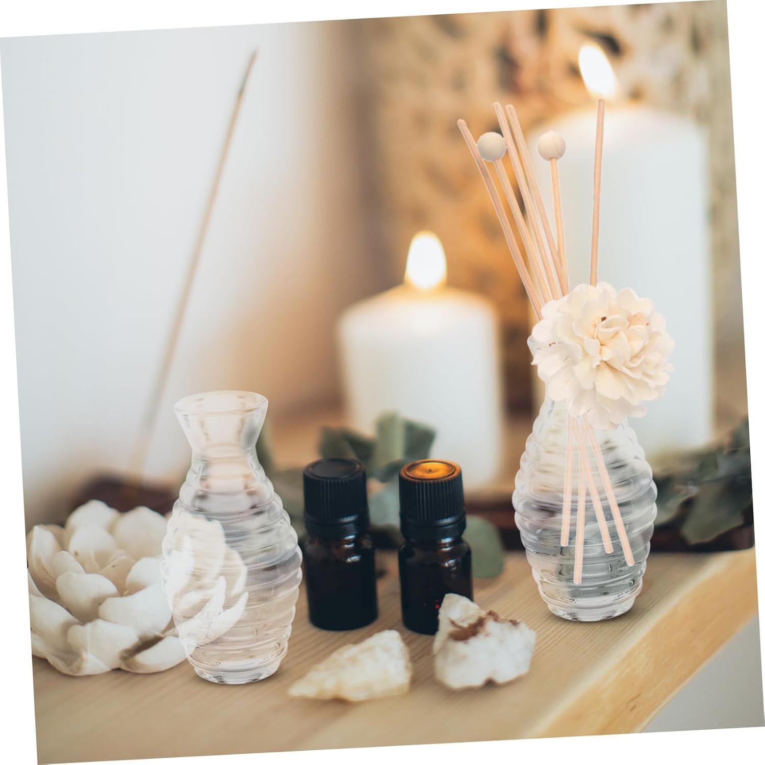 Package Include 6 x Glass Bottles Characteristics -Capacity: 100ML Aroma Containers -Material: Glass glass aromatherapy bottles -Size: 11.60X5.80X5.80cm;/4.56X2.28X2.28in; diffuser glass bottles -Color: Transparent aromatherapy glass bottle - Good workmanship, perfect for displaying your fragrance and perfumes, as well as the aroma sticks fragrance glass diffuser bottles. - They will be attractive for people to focus on you, suitable for your aesthetic and fashion taste diffuser bottle. - Wide open design, thus it is also a desktop flower arrangement bottle for you fragrance diffuser bottle. - Small and convenient to move anywhere for you, the bottle design is and lightweight Bottles. - Suitable for most of special occasions, and will be perfect as for your friends, family aromatherapy container.Goods Informationfragrance diffuser bottle There are aroma bottles, lightweight and portable to carry.Glass Bottles The delicate and stylish design will show your special fashion taste, can be used to fill aroma stick, perfume or other liquid, also will provide you impressive using experience