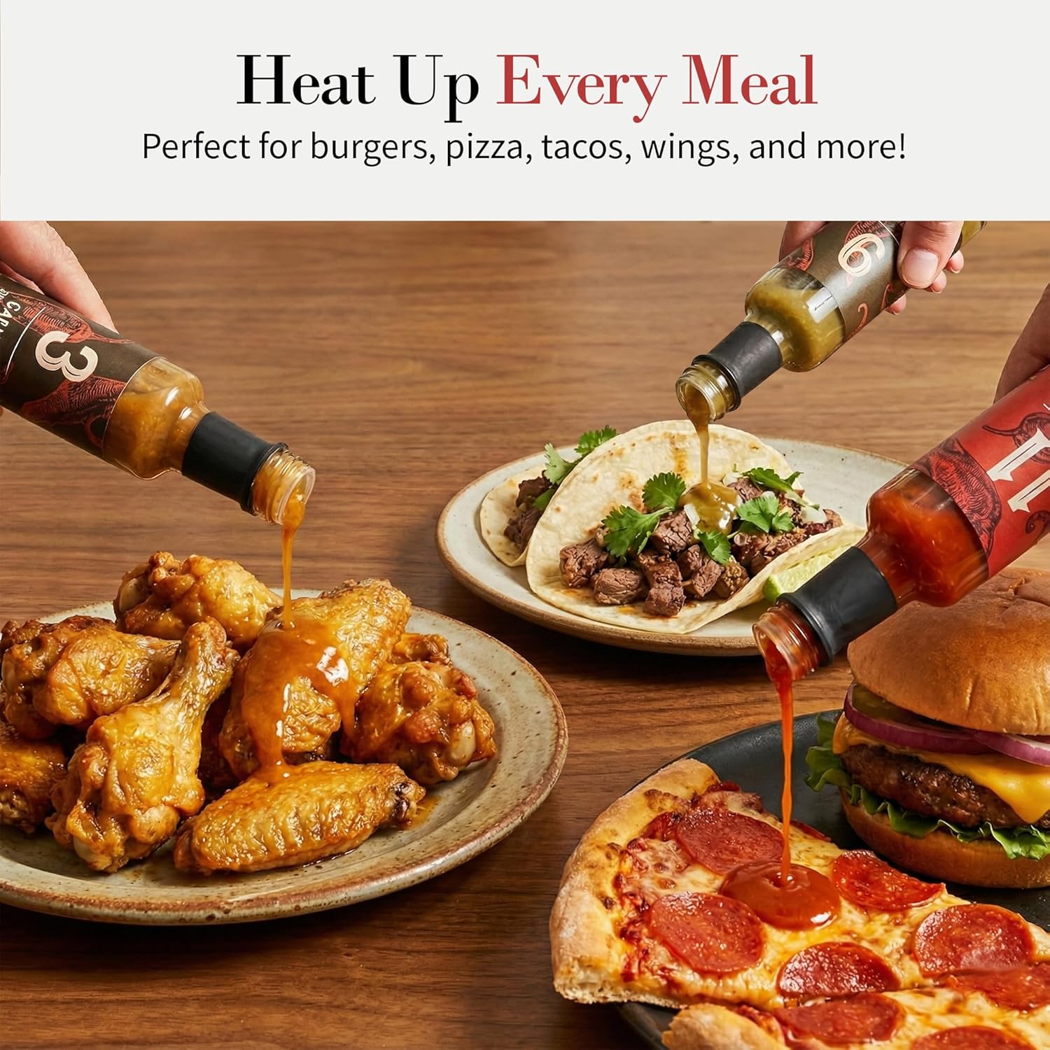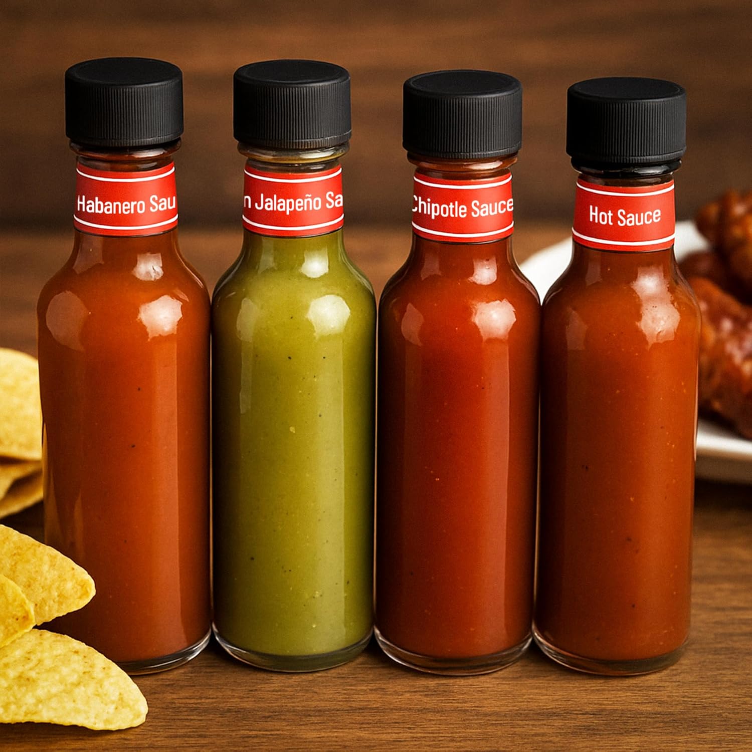 | Flavor | Wasabi Hot Sauce, Hot Sauce, Garlic Hot Sauce, Cajun Hot Sauce, Chipotle Hot Sauce, Extra Hot Hot Sauce, Mango Mild Hot Sauce, Jalapeño Hot Sauce, Habanero Green Hot Sauce, Habanero Red Hot Sauce, Carolina Reaper Hot Sauce |