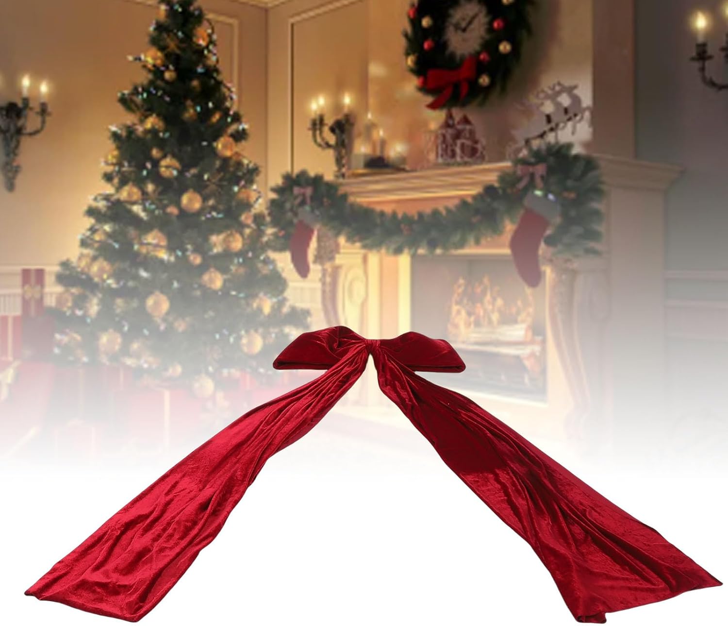 Spec: Item Type: Xmas Tree Topper Bow Material: Cloth Weight: Approx. 812.00g / 28.64oz Product Size: Approx. 70x180cm / 27.6x70.9in Color: Red Package List: 1 x Xmas Tree Topper Bow