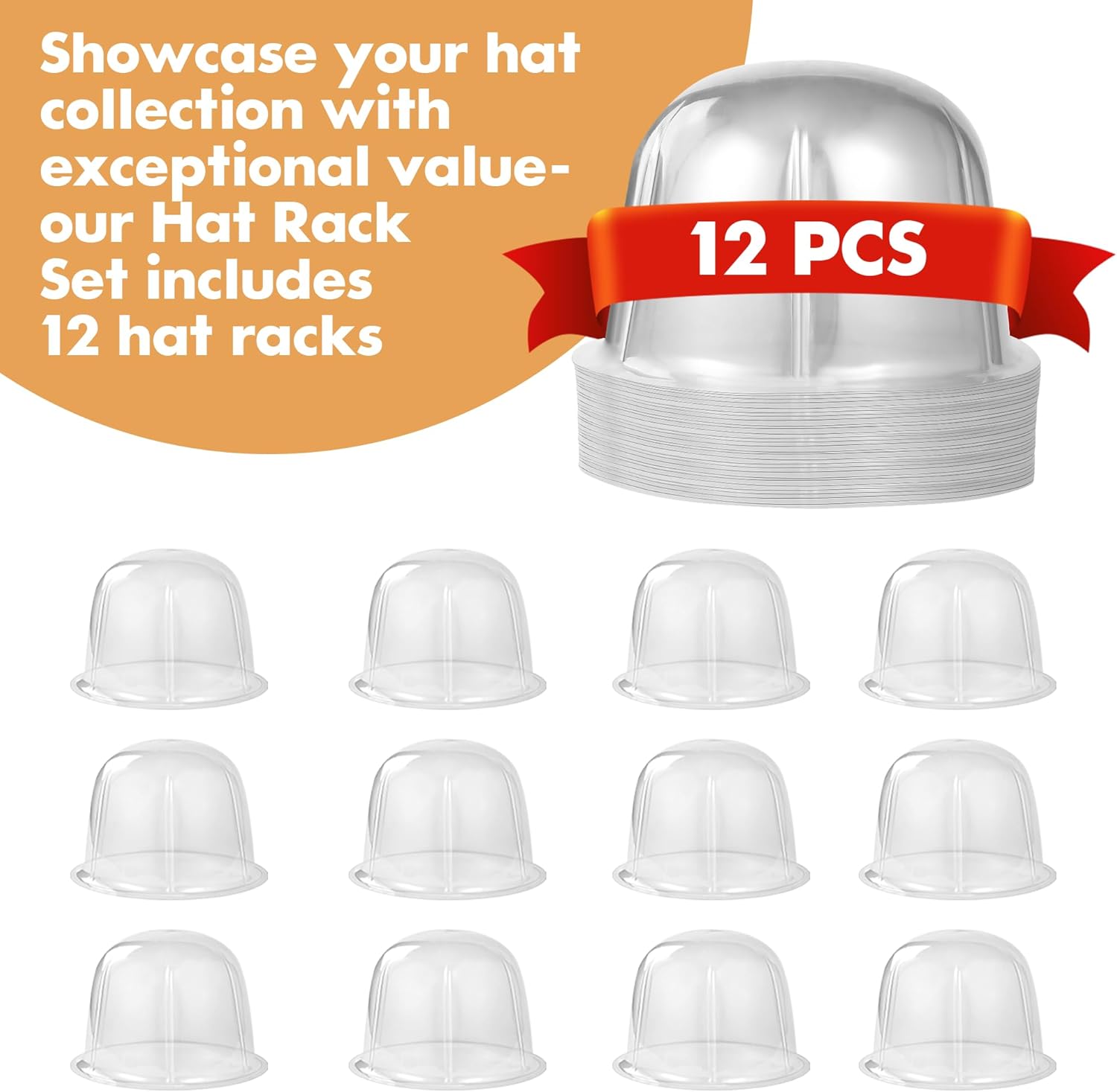 12 PCS Hat Holder Display Organizer Racks Stands Table Top Storage Hanger for Cowboy Fedora Closet Trucks Brim Bill Shaper (Clear)