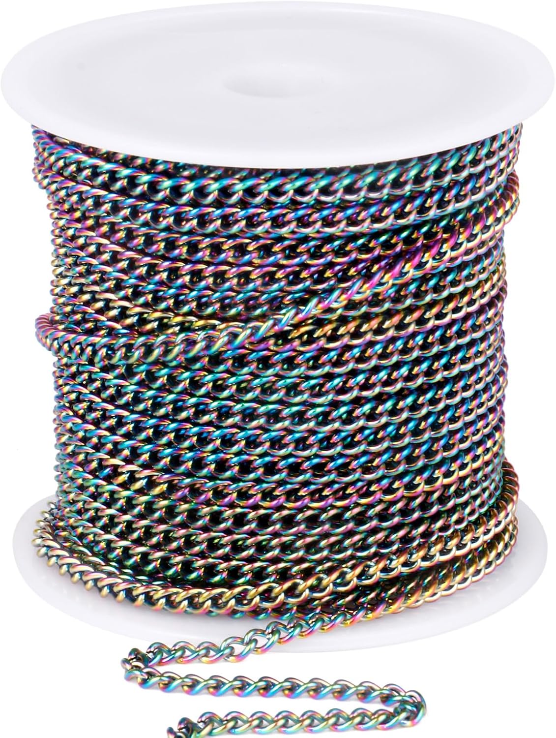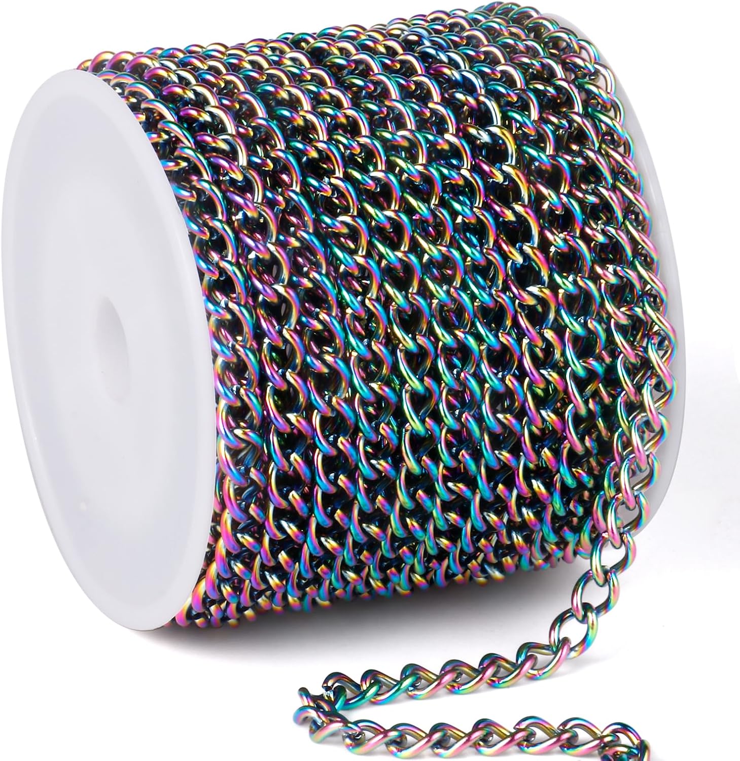 16.5FT Colorful Stainless Steel Curb Chains Roll, 7mm 304 Stainless Steel Multi Color Flat Twisted Links Curb Chains Bulk Spool for Jewelry Making DIY Craft