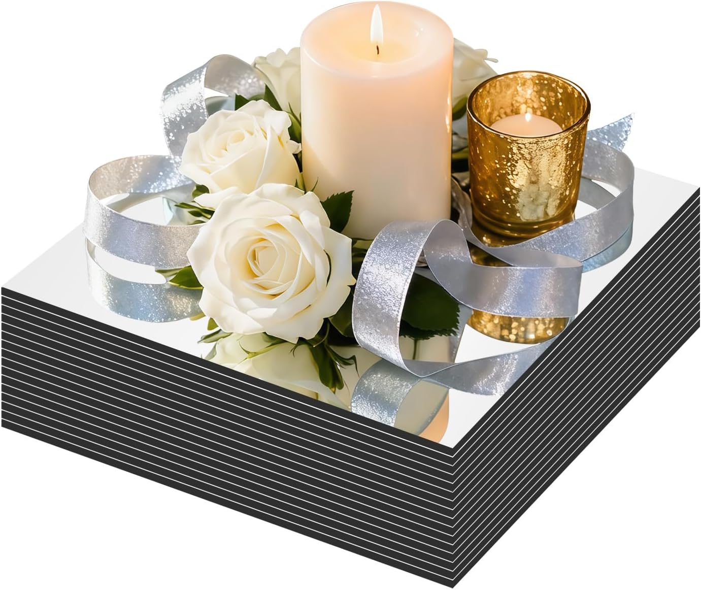 Transform your event décor with this versatile set of 16 square acrylic mirror centerpiece trays. Perfect for creating stunning table displays at weddings, birthdays, and special occasions, these reflective plates add an elegant touch to any setting. Each mirror tray serves as an ideal base for candles, floral arrangements, or decorative items, helping you craft eye-catching centerpieces that capture attention. The versatile design also makes these pieces excellent for wall décor and craft projects. The durable acrylic construction offers a practical alternative to glass, making these mirrors both beautiful and functional. Whether you're planning a grand celebration or looking to enhance your home décor, these mirror trays provide endless creative possibilities for your decorating needs.