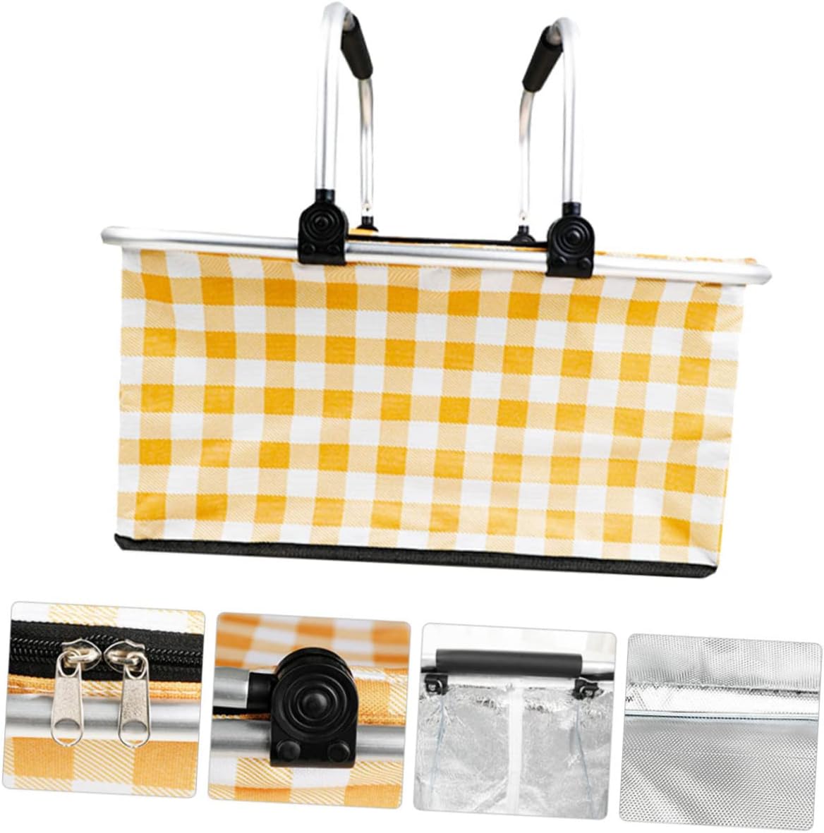Package List 1 x Picnic Basket Characteristics - Material: Aluminum film and Oxford cloth Aluminum Frame Picnic Basket. - Color: Yellow Barbecue Basket. - Size: 45.00X38.00X24.00cm/17.68X14.93X9.43inch Cooler Basket. - The foldable design is convenient for US to store and will not take up too much space Large Capacity Picnic Bag. - This insulated picnic basket is a helper for picnic BBQ Bag. - Made of materials, this picnic basket is durable and practical Insulated Picnic Basket. - With the foldable design, it is very convenient to store Cooler Basket for Picnic. - Comfortable handle, easy to take, feel to use, reduce travel burden BBQ Basket.Goods DescriptionCooler Basket for Picnic This insulated picnic basket is a helper for picnic.Barbecue Basket This item is an insulated picnic basket, which is made of material, waterproof and heat insulation.Large Cooler Bag The heat insulation function can keep food warm.Collapsible Basket With the portable handle, this picnic bag is very convenient to carry.BBQ Basket With the foldable design, it is very convenient to store