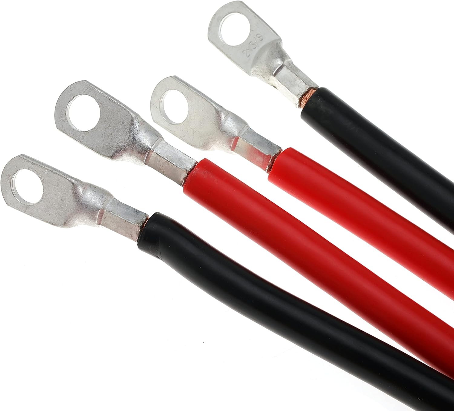 Specifications: Cable Insulation Color: One black cable+One red cable Wire Gauge: 2 AWG/35MM2 Battery Cable Length: 5 Feet Diameter Mounting Hole: 3/8 inch both ends Advantages: Polyolefin heat shrink tubing applied to form a protective seal Copper cable lugs are made of pure copper, which has excellent conductivity characteristics, and are tinned coated and utilize a closed end design for corrosion protection Note: Which cables you need are based on how long the cable needs to be and how many watts you’ll be running Please carefully check all the product information to make sure this is the right one you want before purchasing