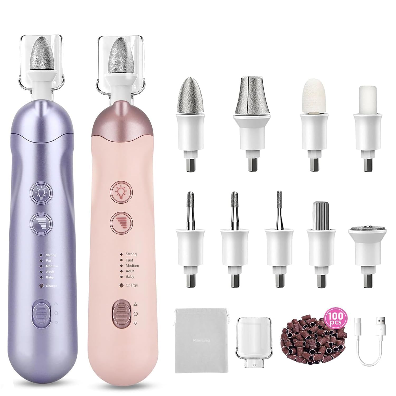2 Pack 5-Speed Cordless 9-in-1 Electric Nail Drill Set: 100 Bits, Ideal for Home DIY & Salon Precision