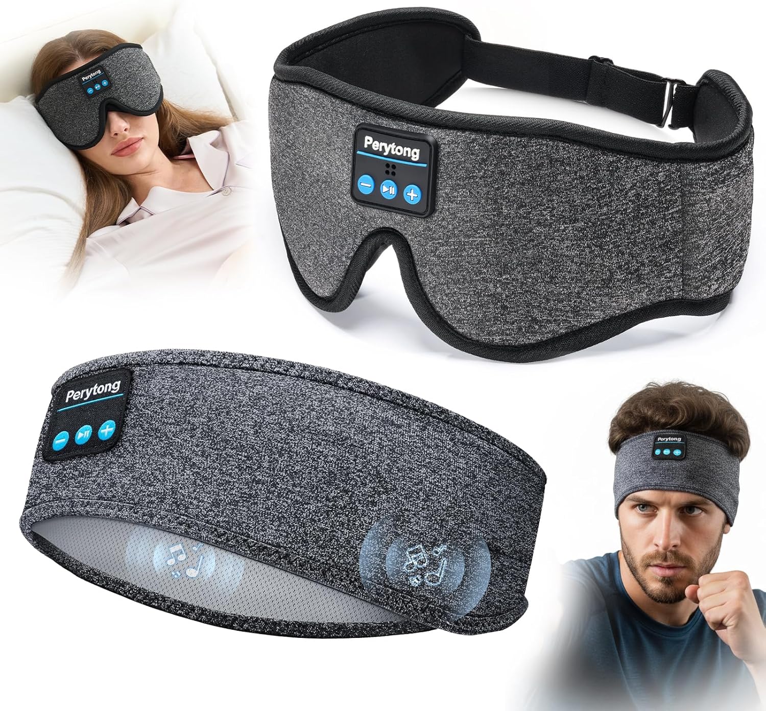 2-Pack Sleep Headphones Bluetooth 3D Sleep Mask & Wireless Headband Headphones with Ultra-Thin Speakers, Sleeping Headphones for Side Sleepers, Running, Workout, Insomniac, Travel, Gifts, Meditation