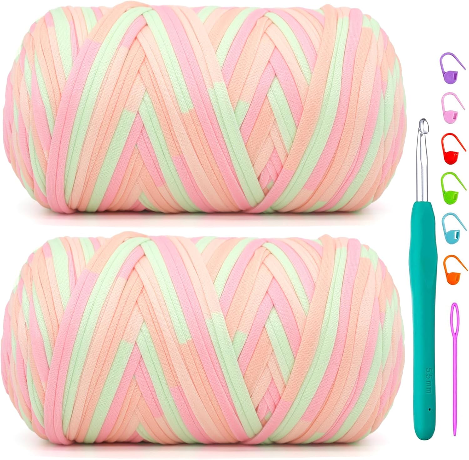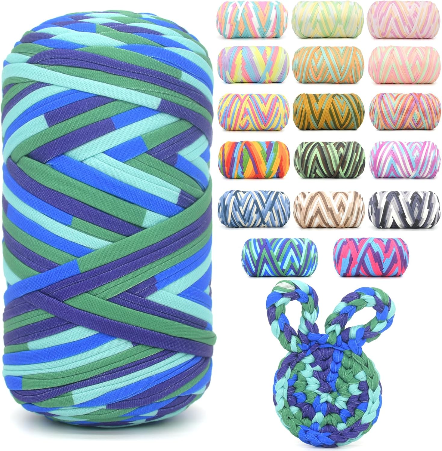 2 Pack Tshirt Yarn for Crochet,Rainbow T Shirt Soft Elastic Fabric Chunky Thick T-Shirt Crochet Yarn for Crocheting Knitting Beginner Hand Knitting Bag/DIY Craft/Home Decor 2 * 400G-Blue White