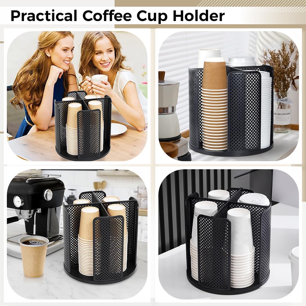 2 Pcs Rotatable Coffee Cup And Lid Dispensers, 4 Compartments, For Countertop, Bathroom, Kitchen, Coffee Shop