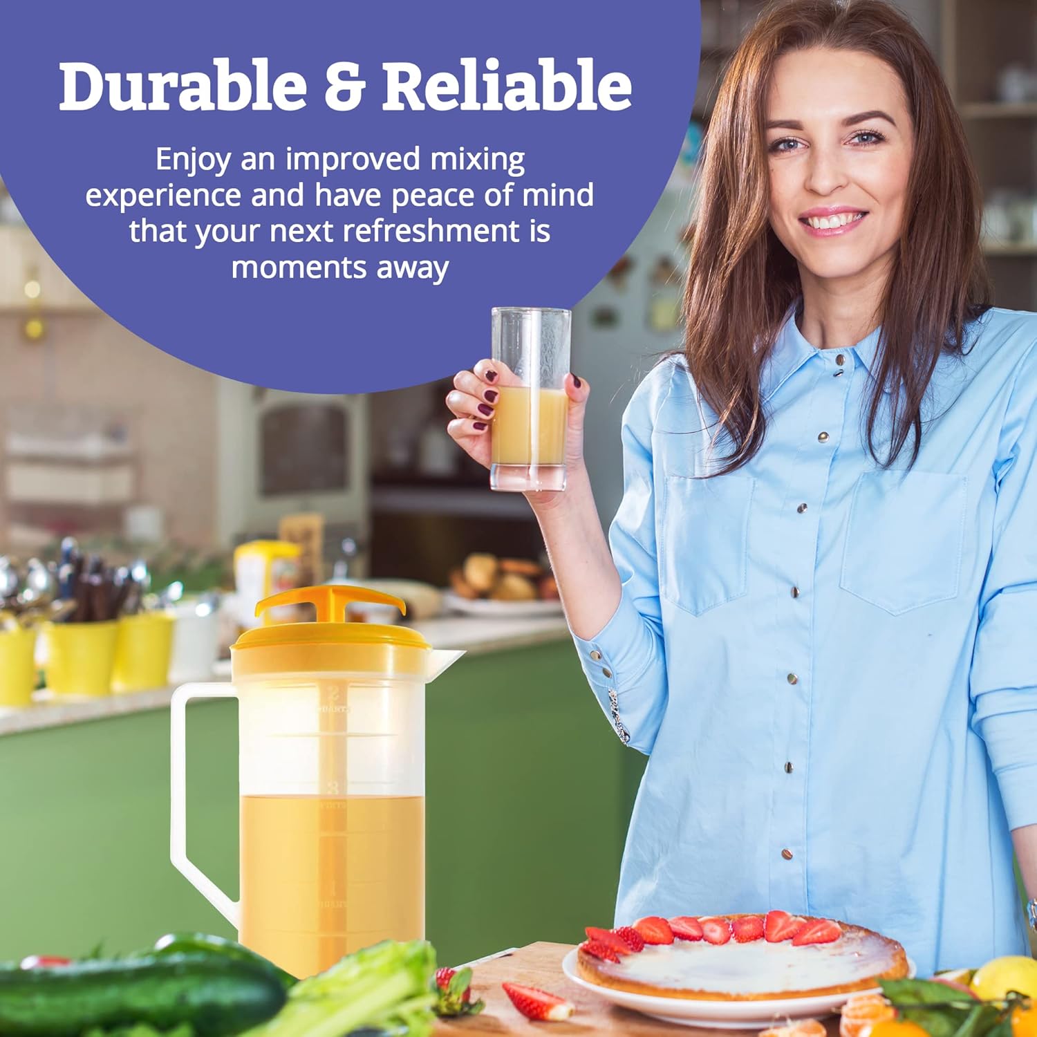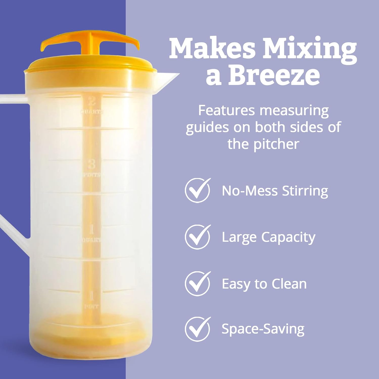 The JBK Pottery 2-Quart Mixing Pitcher features an innovative plunger for smooth, clump-free mixing of beverages like baby formula, shakes, tea, and more. Made from durable, BPA-free plastic, it’s dishwasher-safe for easy cleaning. The spill-proof lid and no-drip spout make it perfect for storage and on-the-go use. Its compact design fits in most fridge doors, offering convenience and versatility for daily use.