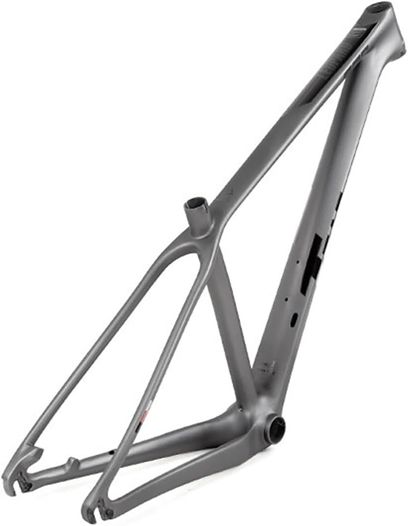 27.5er 29er Carbon Fiber Bikes Frame Hardtail Mountain Bike Frame 15''/17''/19'' Quick Release Cyclocross Frame Disc Brake Routing InternalCarbon Fibre mountain Bikes frame Information:Frame higth: 15/17/19inchMaterial: Carbon FibreHeadset: 42*52mmSeatpost: 31.6mmSeatpost Clamp: 34.9mmQR: 135mm Quick ReleaseBottom Brackets: BB92*41mm Press-in Bottom BracketBrake: Hidden Disc Brake MountFor wheel:27.5/29'' wheelsMaximum tire width: 29*2.25"Weight: about 1190gPROESS: Shifter brake internal routingXC cyclocross gradeCan install pull forward Front derailleurGlossy lacquer ProcessPackage:Frame x1Tail hook x1Note:1. Please allow slight dimensional tolerances due to manual measurements, lighting in photography may cause color differences from real life.2. Please double check the size details in our list according to your actual situation to make sure you buy the right bikes frame.3. If you have any product and service questions, please contact us and we will get back to you within 24 hours.