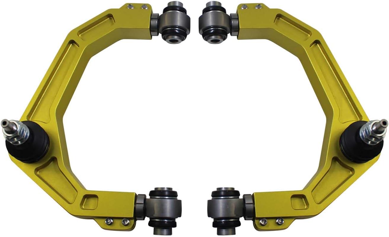 Front Upper Control Arms End Bushing Kit 2-4" Lift For 2005-2023 Toyota TacomaDescription:◇Forged billet aluminum with Black anodized coating, CNC machining aluminum dust cap and stainless-steel hardware are resistant to corrosion stand up to the most brutal elements for long trouble-free life.◇Increases wheel travel and corrects angle of upright mount for lifted application allowing more articulation and less camber change throughout the suspension travel.◇Designed to increase wheel travel, correct suspension geometry, and allow larger coil overs to be installed while eliminating binding and camber change.◇Using uniballs and rod ends eliminates the need for grease reducing maintenance and being fully rebuildable ensures great performance for the life of the arms. CNC machined to vehicle specific dimensions with angle correction built into the design.Front:◇Tubular Upper Control Arms for 2-4" Lift Kits.◇Alpha Chromoly Joints with a Built in Taper.◇Maintenance Free Pressed Thermofuse Pivot Joint Bushings.◇Hardware Included.Specifics:Color:BlackMaterial:6061 Aluminum & SteelType:Front Upper Control Arms/Suspension Lift KitCondition: 100% Brand NewFitment Type:Direct ReplacementPlacement on Vehicle:Front、Ldft、RightAdjustable: YesBall Joint Included: YesBall Joint Mounting Type: Press InBall Joint Stud Type: ThreadedBushing Material: Rod End BearingBushings Included: YesControl Arm Construction: BilletControl Arm Material: AluminumFinish: AnodizedGrade Type: PerformanceGrease Fitting Included: YesMounting Hardware Included: YesPre-Greased: NoSuspension Grade Type: PerformanceKit Includes:◆2 x Front Upper Control Arms ( Left + Right Side )Quantity:1 Set (2Pcs)Fitment:2005-2023 Toyota Tacoma 6LUG 2WD2005-2023 Toyota Tacoma 6LUG 4X4 4WD6LUG MODELS ONLYFeature:◆CNC machined 6061 billet aluminum upper control arms allow for on-vehicle camber and caster adjustment.◆Upper control arms allow for additional wheel travel while improving suspension geometry for predictable handling.◆Direct bolt-in design makes for a simple and straightforward installation.◆Delta Joint combines the durability and weather resistance of a ball joint with the performance characteristics of a uniball.Note:★This control arm is made in our factory, if you need extra ball joints or bushings, please contact us and we can provide them..★Professional Installation is Highly Recommended.★Installation Instruction is NOT Included.