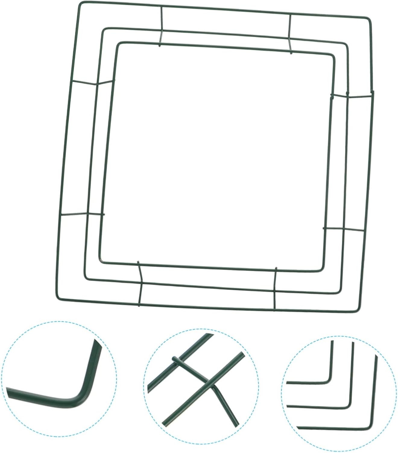 Package Include 2 x iron wreath rings Features -Material: Iron DIY wreath frame -Color: Green flower decor wreath ring - Suitable for Christmas, weddings, holidays and other events square wreath ring. - Great for making your own wreath on walls and doors to add a strong festive atmosphere to your house flower frame. - With this creative shape wreath frame rings, you can add some beautiful items on them according to your preference wreath ring. - Using your imagination, to create crafts, you can also send the finished products to your friends or family members as wall art wreath ring. - Features the solid structure, which ensures the steadiness of the shape festival wreath ring.Goods Descriptionflower decor frame Suitable for decor for home store garden.wall art wreath frame It is made of high class iron material for and to use.iron wreath ring Simple design is and beautiful, workmanship.wreath ring This product is an iron frame for wreath or garland DIY use