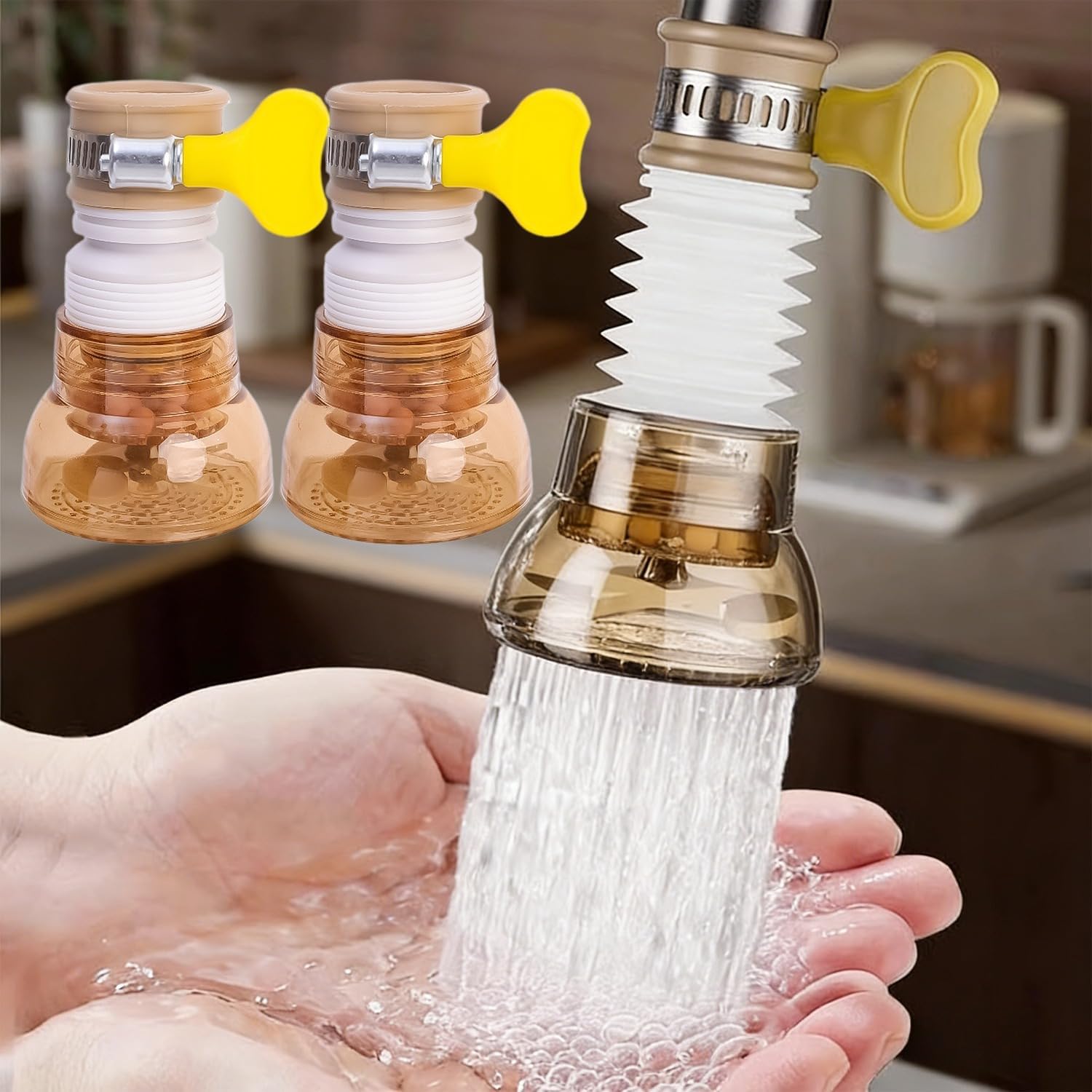 2Pcs Universal 360° Rotating Faucet Aerator Water Saver Spout Kitchen Faucet Nozzle Adapter Sink Accessories (2Pcs Grey)