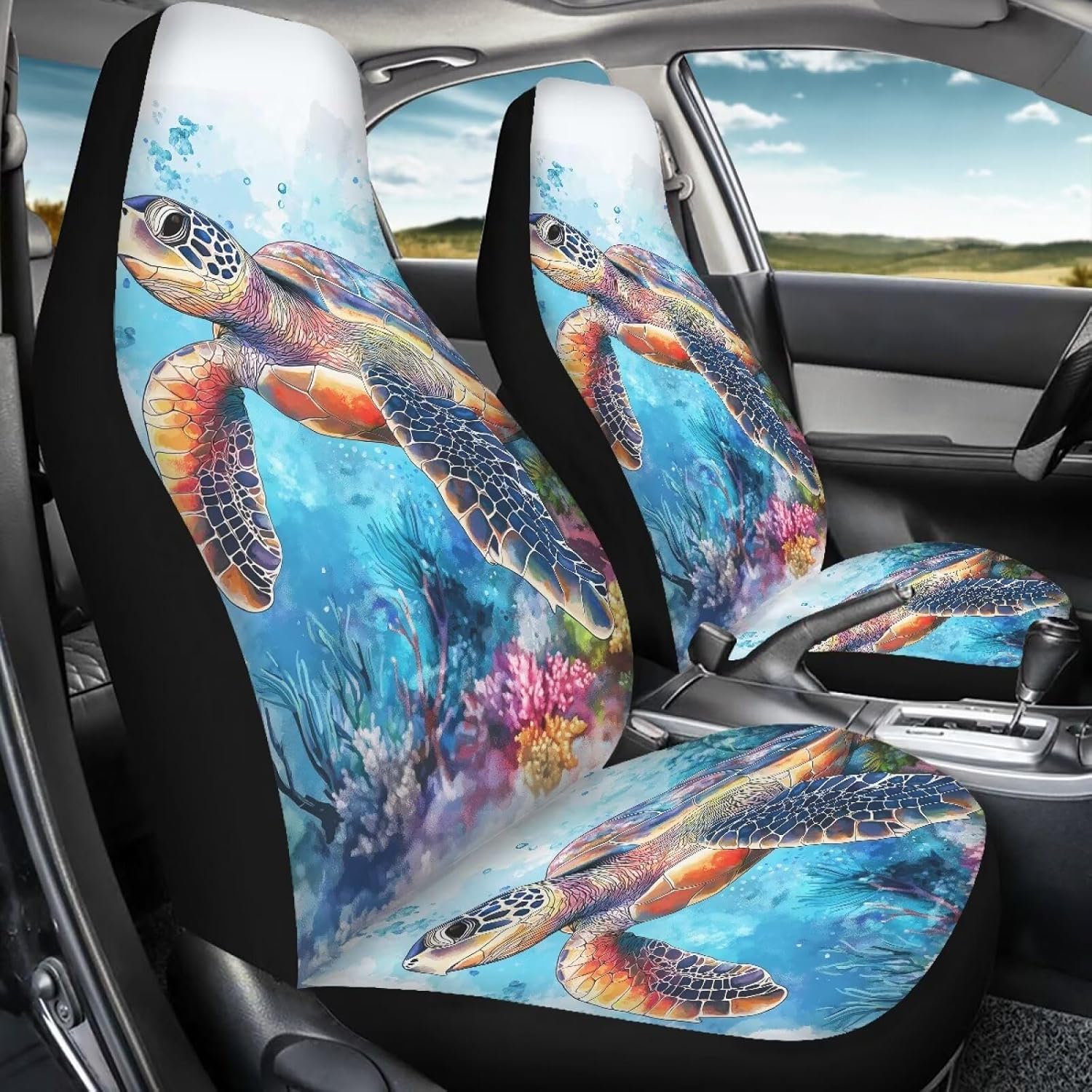 2PCS Car Front Seat Covers Set Covering your car, truck, or SUV's seats can keep your interior looking new, cover existing damage, or even personalize your interior to suit your taste and interest. Seat covers can protect your seats from UV rays, spills, kids, pets, work, tools, entry/exit friction, food, sweat, ect. Seat covers can also increase comfort. Notice: Material: Made from polyester fabric material, very comfortable material Features: Multiple Prints. Fits almost Cars, Trucks, Vans, SUV include 2 pieces front seat cover ,armrest is NOT included. Protect your interior seating from dirt and spills. EASY to install and clean, elastic strap with hooks on the bottom of the seat covers. Dear Buyer : Thanks for your business! We will always strive for 100% customer satisfaction.If you have any questions, please don't hesitate to contact us directly!