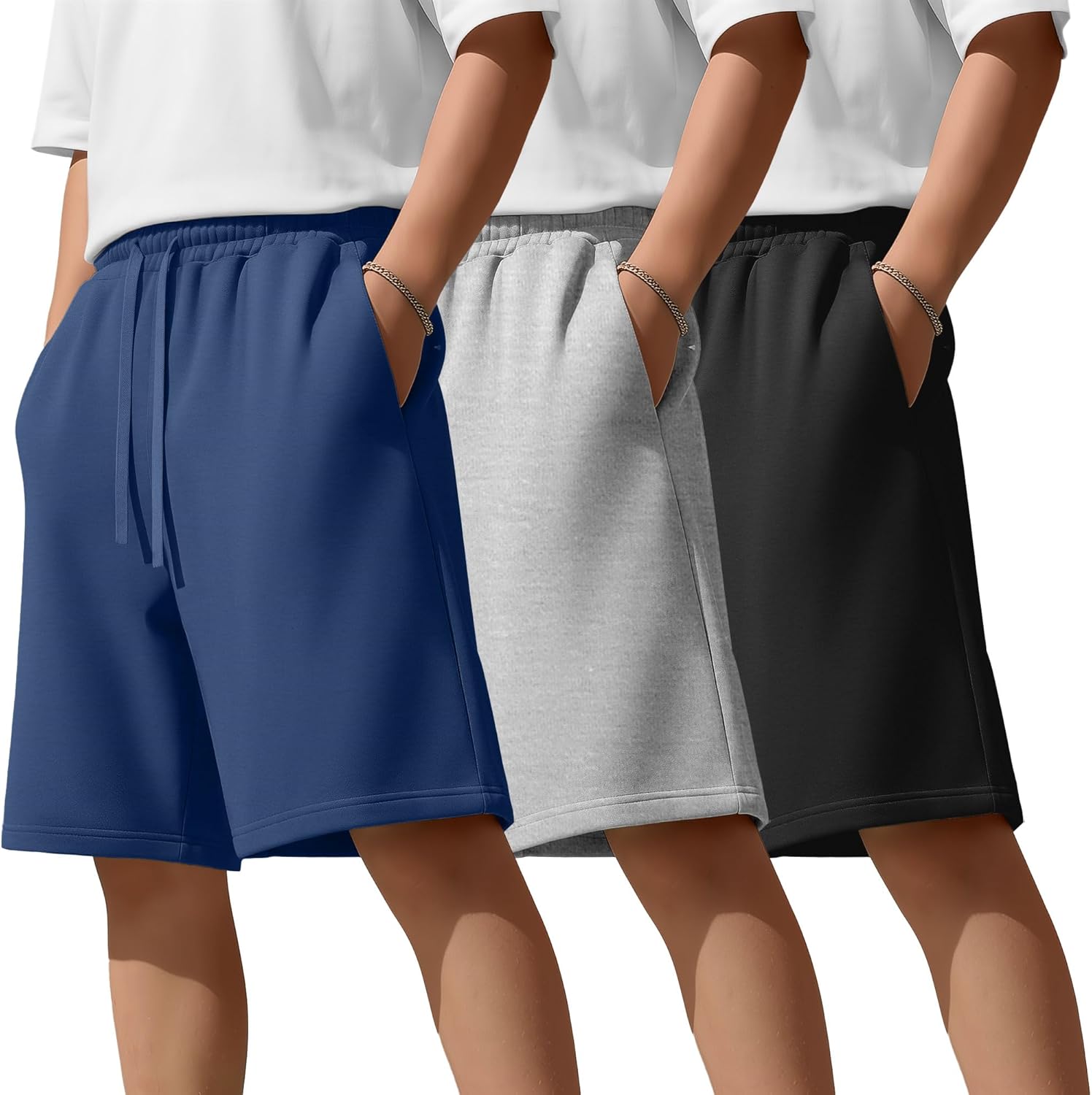Features: Versatile Style Fit: This boy's sweat shorts can meet teens' wear needs, sufficient for daily changing, match well with sports tops, t-shirts, sneakers, It can also be a gift for your boy. Easy Care: Machine washed or hand washed in cold water on a gentle cycle, hang to dry, and will not shrink easily after multiple washes. Do not bleach. Specifications: Material: 60% Cotton, 35% Polyester, 5% Spandex Package includes: 3 Pack boys' jogger shorts Notes: Manual measurement, please allow slight errors on size. The color may exist a slight difference due to different screen displays