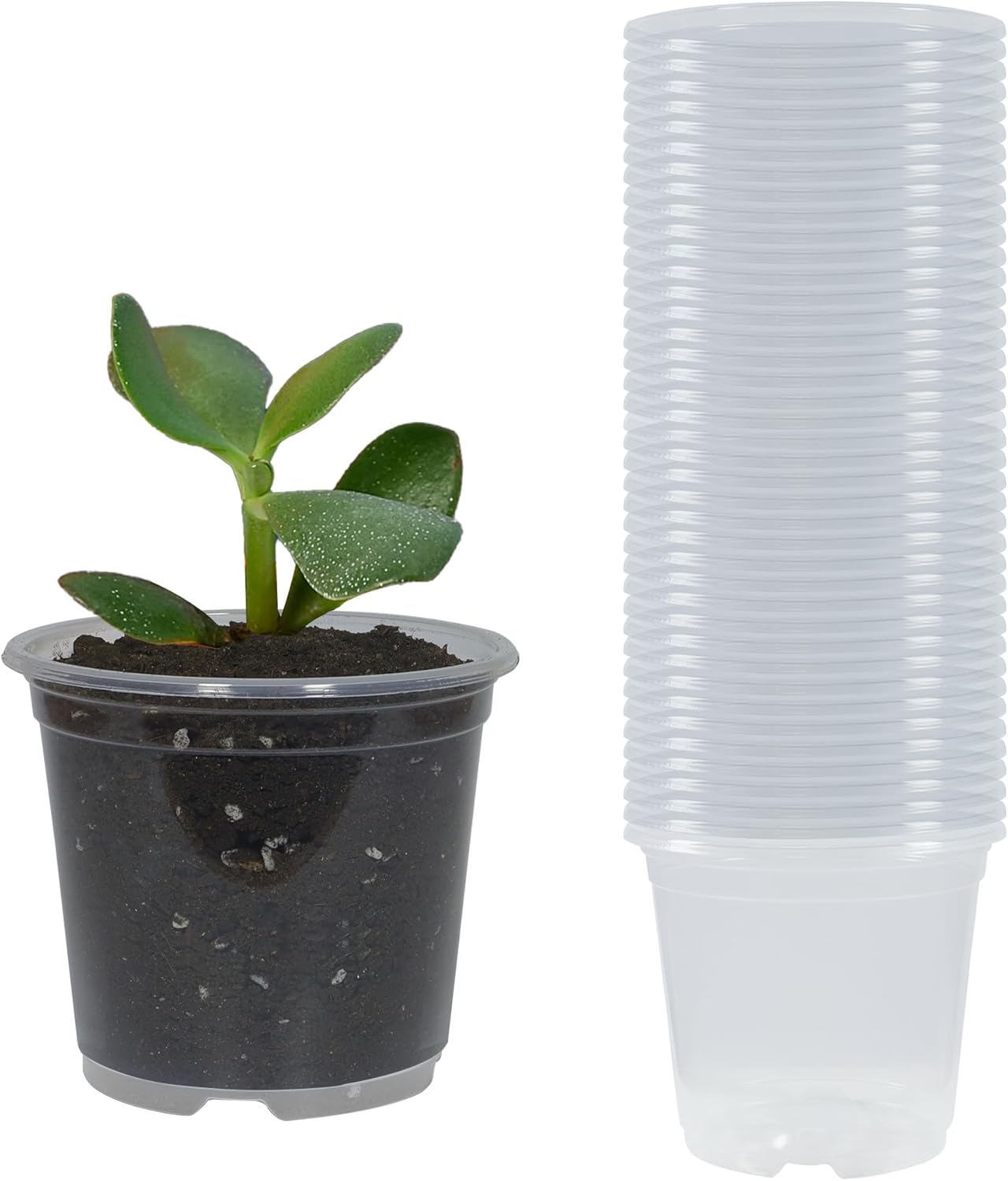 30 Pack 3/4/5/6/7 Inch Clear Nursery Pots with Drainage and 30 Pack Plant Saucers, Plant Pots for Plants Transparent Potting Containers for Plants Seeding Starter Pot (Clear, 3/4/5/6/7 Inch)