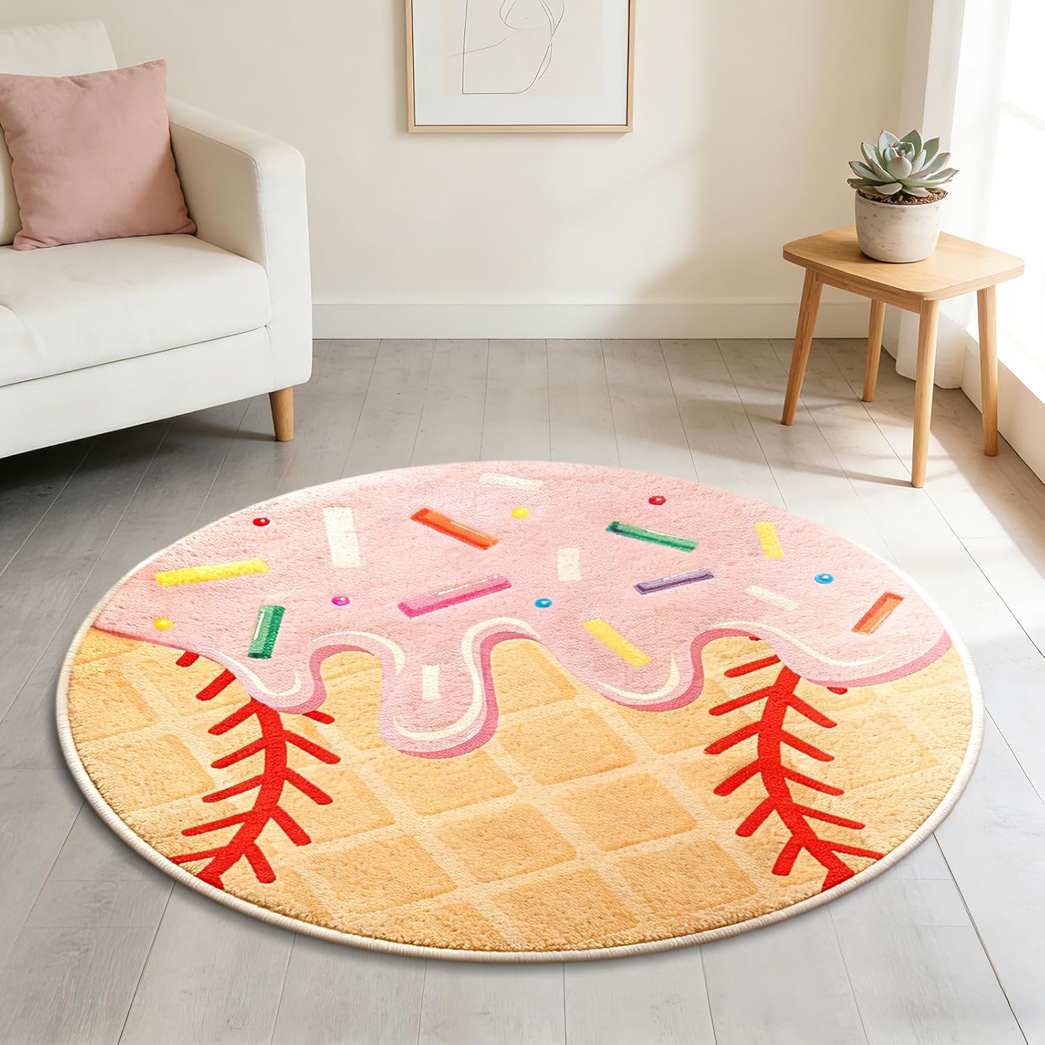 AKAIXI Baseball Rug for Boys Bedroom DecorRound rug with iconic real baseball red stitching brings ballpark excitement to your home, perfect for baseball room, sports-themed bedroom and boys’ room decor. 80cm (31.5in) diameter, space-saving, fits bedrooms, living rooms, entryways, small apartments and more. Crafted from soft flocking material with non-slip TPR backing, locks moisture, traps dirt, protects floors and reduces slip risks. Fully machine-washable (low-temperature gentle cycle recommended), easy to clean without hand-scrubbing; air-dry flat for long-lasting use. Finely crafted, durable, versatile for entrances, nurseries, dorms, classrooms, playrooms and baseball party decorations—ideal for sports and baseball lovers.After-Sale Service:If you have any problems with our product, please contact us as soon as possible and we will provide you with a comprehensive solution to ensure the normal use of the product.Note:1、There may be slight error in product size due to different measuring tools, please allow the error.2、The product color may have errors due to the display difference of the monitor, please allow the error.