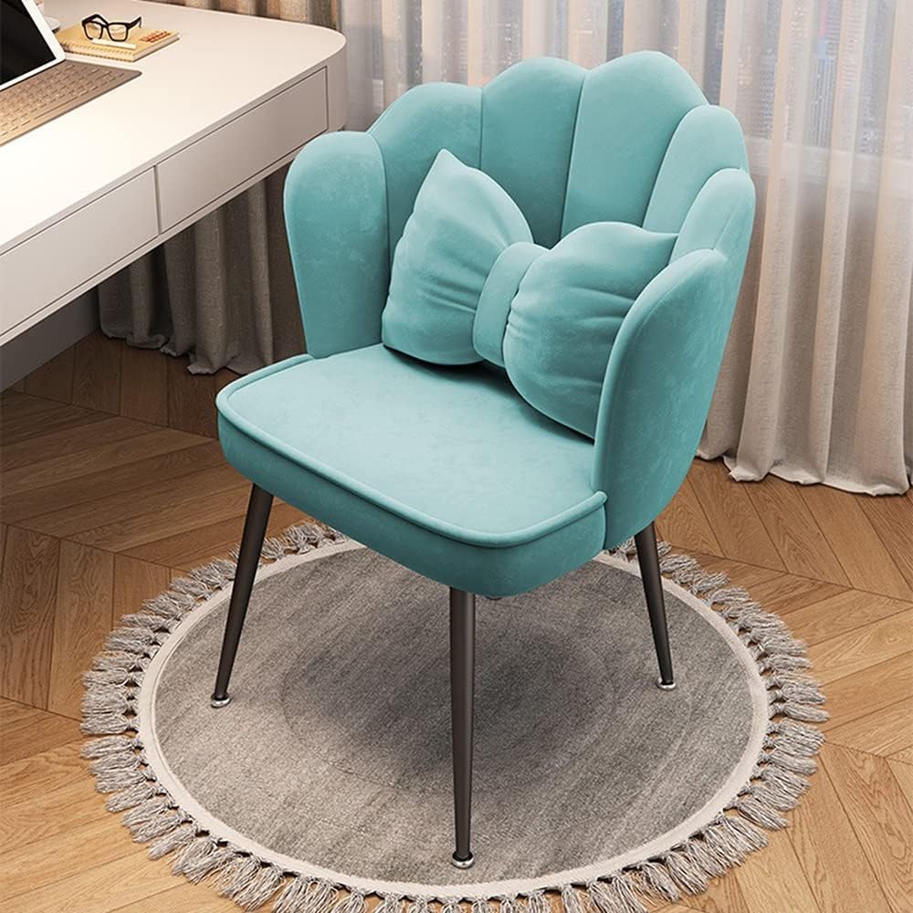 Enhance your living space with the Flower Shape Vanity Chair, a stylish and versatile addition to any room. This 360° swivel vanity stool combines a modern design with exceptional comfort, making it the perfect choice for your dressing table, bedroom, or home office. Crafted with premium materials, including metal, flannel, and sponge, this velvet-feel accent chair not only elevates your decor but also provides a cozy spot for makeup application, reading, or relaxing. The unique shell shape with petal-shaped metal legs adds a touch of elegance, turning an everyday chair into a statement piece that complements your decor. With dimensions of 14''L x 14''W x 28''H, and a seat height of 16'', this chair is designed for comfort and usability. Its generous load-bearing capacity of 240 lbs ensures that it can accommodate a variety of users, making it a practical choice for any household. Weighing only 12.5 lbs, it is easy to move around as needed. The velvet upholstery is not only visually appealing but also soft to the touch, creating a luxurious experience every time you sit down. Whether you're getting ready for a night out or enjoying a quiet moment at your vanity, this chair provides the perfect blend of style and comfort. Please note, all measurements are taken manually, and slight variations may occur. For any inquiries, feel free to reach out via email, and we will respond promptly within 12 hours. Transform your space today with this exquisite vanity chair, and enjoy the perfect balance of beauty and function.