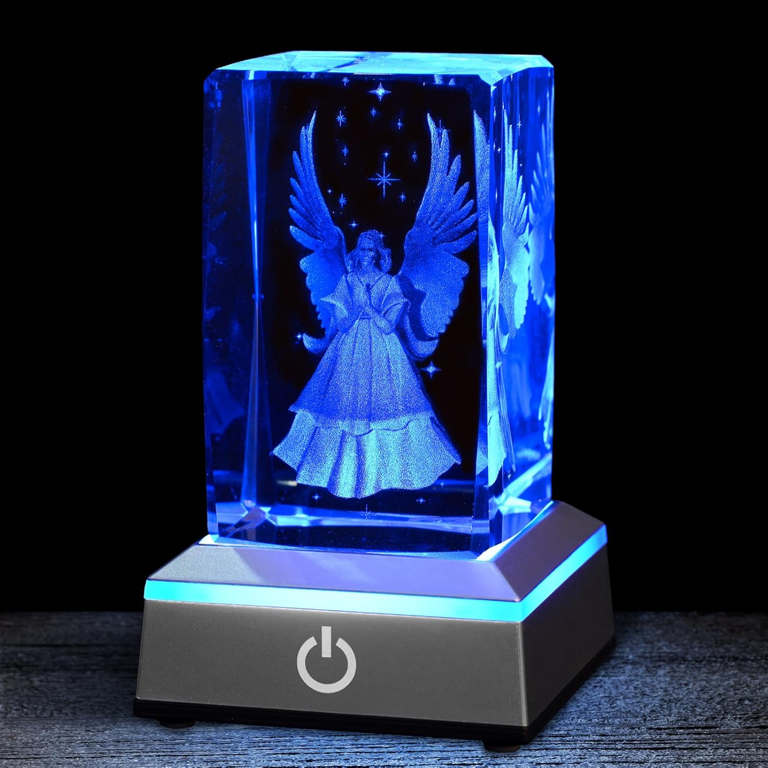 3D Owl Crystal Night Light with Multicolor LED Base Glass Laser Engraved Owl Figurines Lamp Gifts for Boys Girls Lovers Birthday Christmas Room Decor