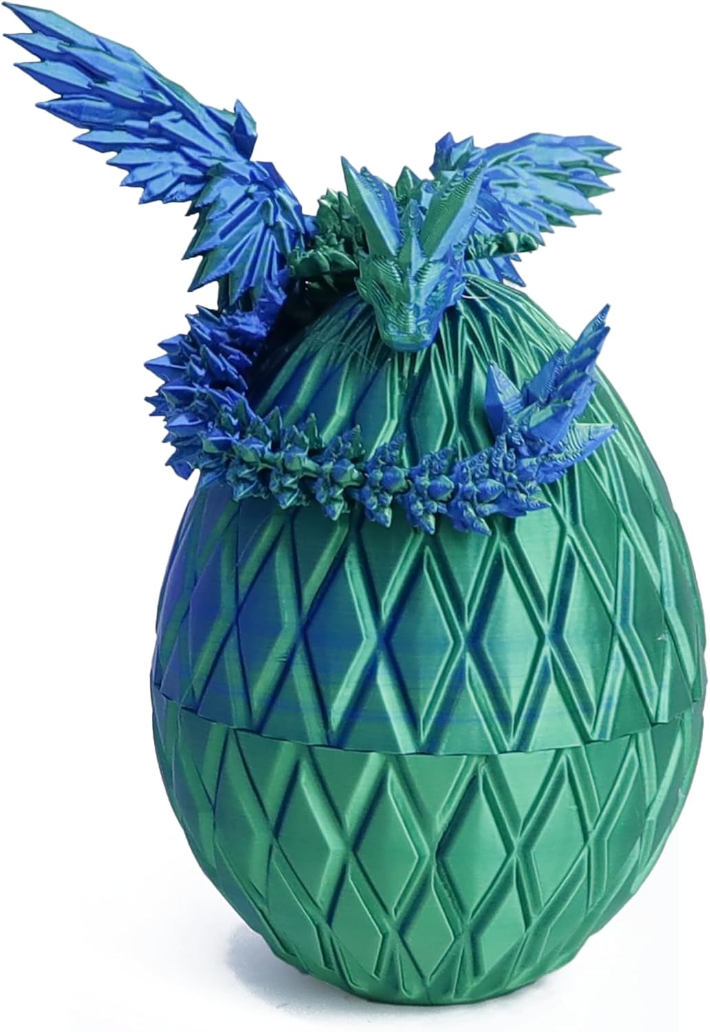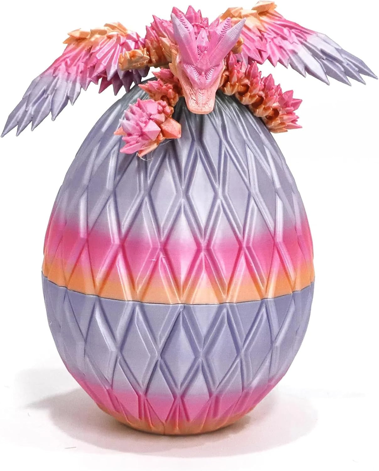 3D Printed Flying Dragon Egg - 7" Winged Dragon in Diamond Easter Eggs, Flexible Crystal Animal Inside, Mystery 3D Gift, Desk Decoration, Fidget Toy (Multicolored Rainbow)