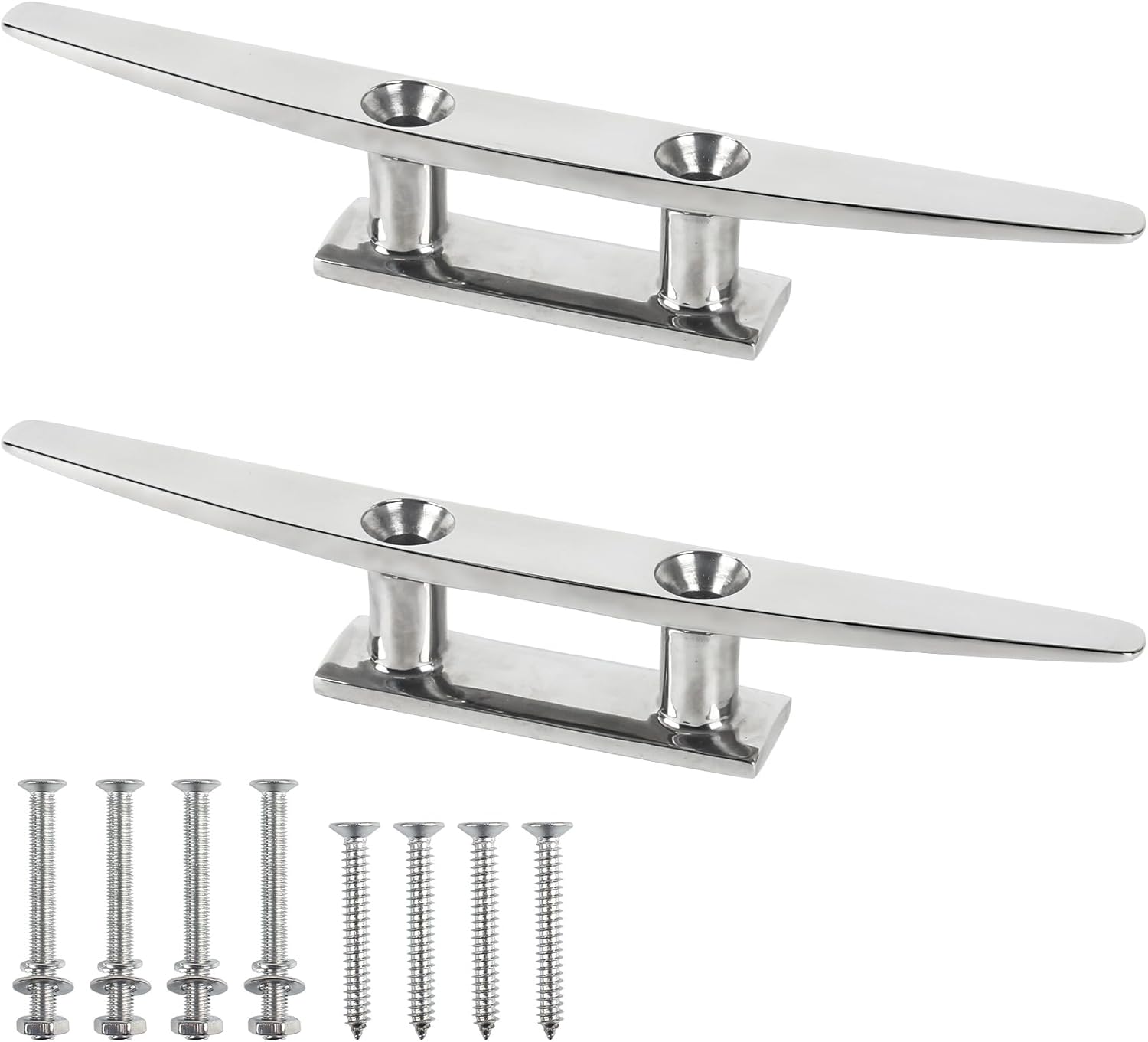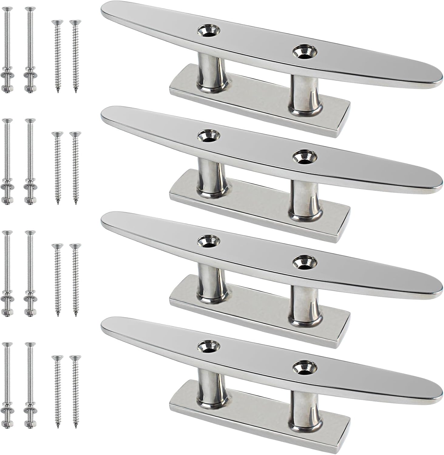 4 Inch/5 Inch/6Inch/8 Inch/10 Inch 316 Stainless Steel Boat Cleats,Open Base Dock Cleats with Installation Screws,Boat Dock Cleats Rope Cleat for Boat Docks,Decks or Nautical Decor (2/4/6/8 Pack)