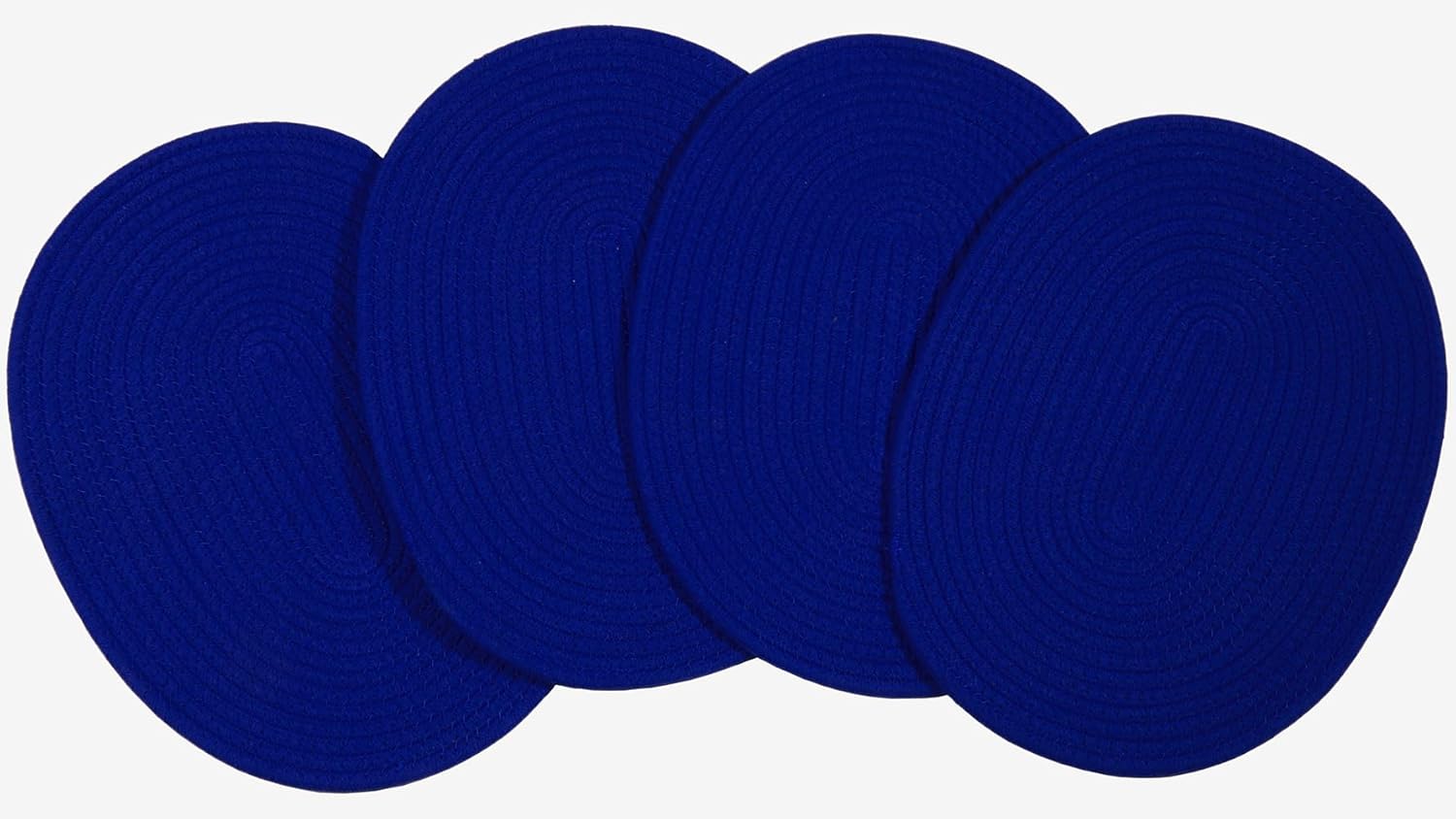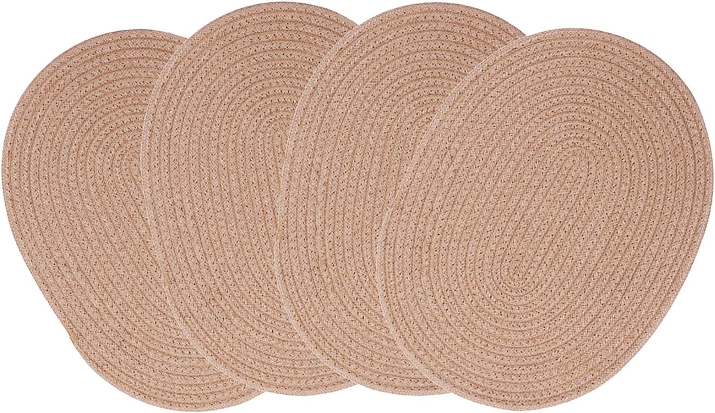 4 Pack Oval Woven Placemats - Fabric Place Mats, Heat-Resistant Non-Slip Tablemats, Washable Charger Plates for Table DecorationMaterial: Cotton WovenCrafted from 100% Water Hyacinth, these placemats are designed to provide excellent heat protection for your kitchen table surface! Package Contents:Set of 4 Woven PlacematsFeatures:1. Gentle hand wash recommended; do not machine wash or bleach. It is advisable to wash by hand and dry in the shade to prevent fading and prolong the lifespan of the product.2. Thick and durable construction ensures comfort while handling; they maintain their shape well after cleaning.3. Enhanced anti-slip design with water absorption and heat resistance properties. Both sides can be used for decoration, making them both beautiful and practical.4. These placemats serve multiple purposes: they can be utilized for tableware, cups, plates, vases, hot pots; as coasters, pot pads, meal pads, seat cushions; or even as play mats for children or pets. Add a touch of natural elegance to your restaurant counter, bar area or breakfast nook—perfect for cooking, baking, serving meals or dining occasions. Additionally, during Halloween、Christmas、weddings、and parties,they enhance your overall dining experience! Please Note: During transportation some deformation may occur due to compression; however,these placemats possess excellent plasticity and will quickly return to their original shape without concern.