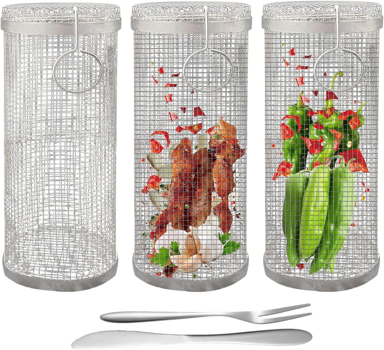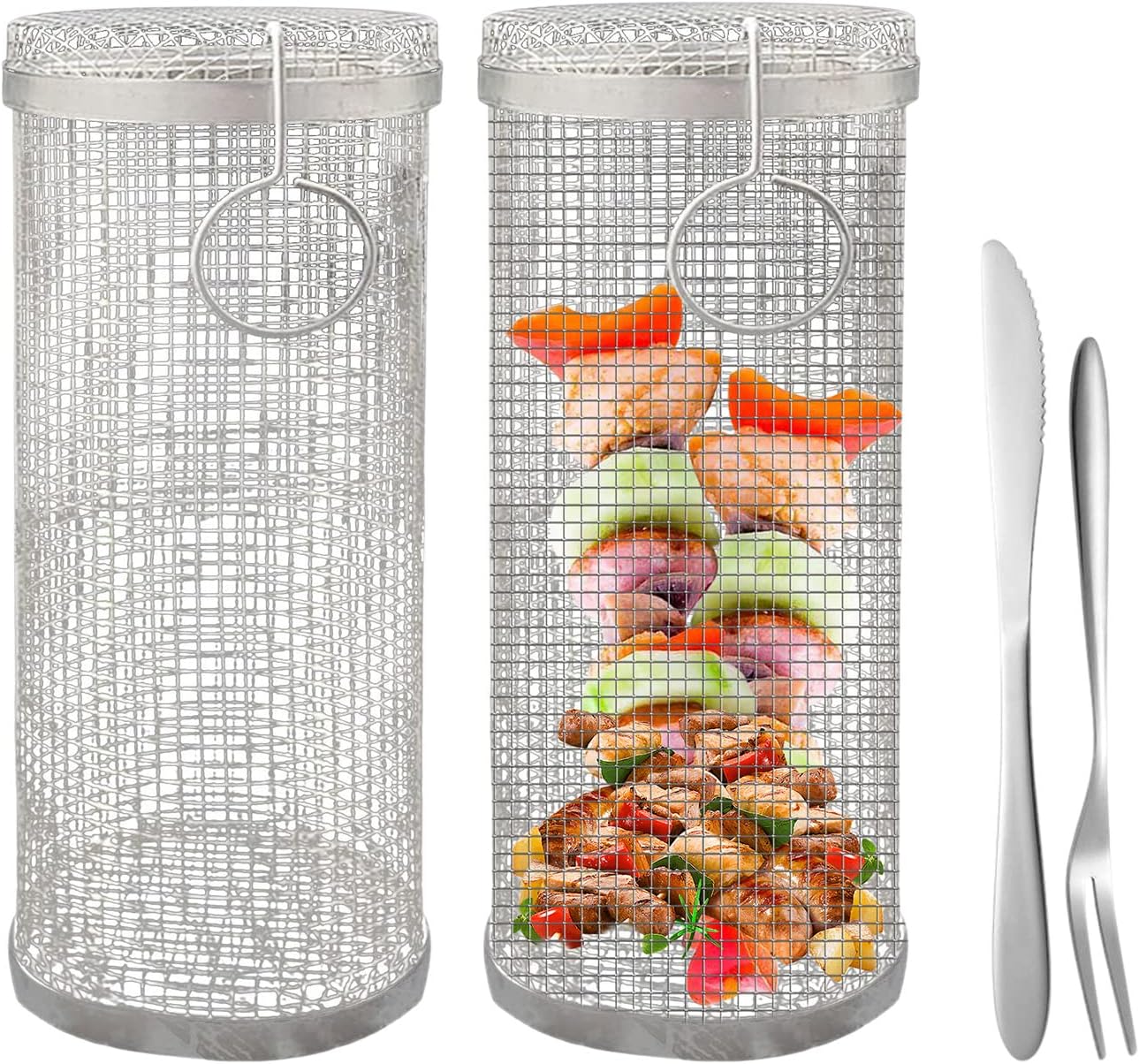 The Grilling Basket Adopts A Rolling Design And Can Hold Different Food At Once.Features:—— Suitable For Chicken, Onions, Garlic, Pork, Pears, And Peaches.—— Made Of 304 Stainless Steel And Useful For Cooking Wet Food.—— Controlled By The Grill Fork And Can Bake Up To 20 Wings In 15 Minutes.Specification:Name: Vegetable Grill BasketMaterial: 304 Stainless SteelSize: M:20X9X9cm/7.87 inchL:30X9X9cm/11.8 inchPacking List:1/2/3/4 pcs * Rolling Grilling Basket🔥 Rolling Grilling Basket🔥Stainless Steel Wire Mesh Cylinder Grill Basket: - Safer and Easier Grilling - Made with the highest quality 304 stainless steel- Enjoy the ease of grilling whether meats, seafood, veggies, or even s'mores for camping night - you'll always get a perfectly even grill with the rolling grill basket. Helps to keep the grill clean,at the same time, it is very convenient to clean,You need only to scrub and rinse in your sink or place in your dishwasher. Perfect for picnics, tailgating, camping etc.
