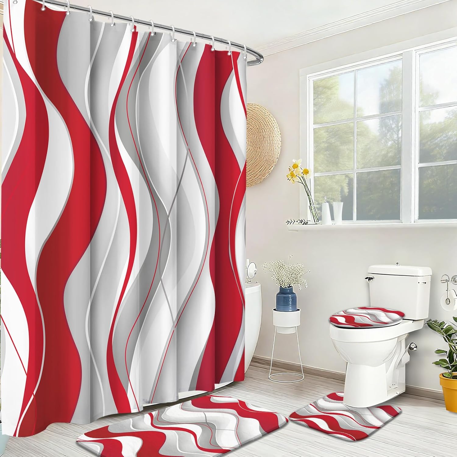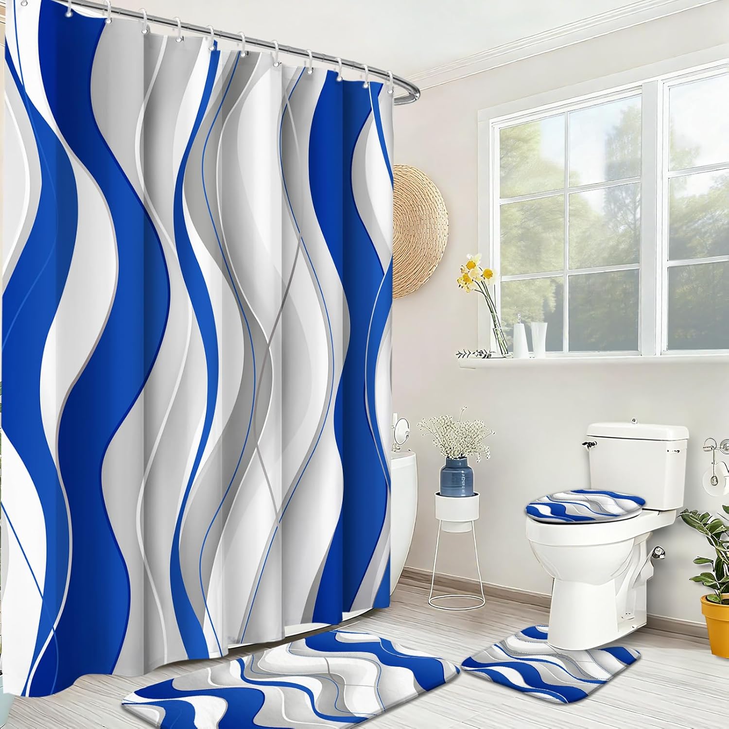 | Included Components | 12 Hooks, Oval Toilet Seat Cover Mat, Rectangular Bath Mat, Shower Curtain, U-Shaped Floor Mat |