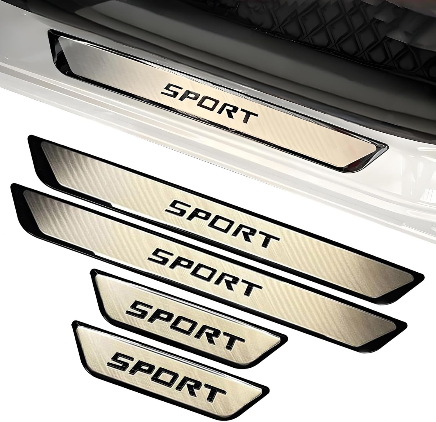 When we get on and off frequently, it is difficult to ensure that the car door threshold will not be scratched, especially when our shoes are with roots,thorns, or gravel. Our stainless steel door sill protectors not only cover old scratches, but also prevent new ones from forming.Product DetailsFront Door Sill Protector Size: Long 18.9"/48.1cm x Width 2.2"/5.6cmRear Door Sill Protector Size: Long 9.1"/23.3cm x Width 2.2"/5.6cmMaterial: stainless steelPacking: 4xCar Sill ProtectorsFeatures1.Cover the original car paint scratches and prevent new scratches.2. comes with strong adhesive tape on the back, easy to install.3.The surface comes with fine anti-slip texture to prevent foot slippage.4. Effectively protect the paint of car door sills , enhance the overall appearance of the car aesthetics.5. Sturdy and durable, stand the test of any weather conditions6. Dirt-resistant, easy to cleanInstallation Tips1. Wipe the surface of the car door pedal clean of dust and water.2. Determine the corresponding door of the each scuff plate guard Sills3. Tear off the protective film on the back of the pedal protector, align it carefully and press it firmly until it fits perfectly.4. Do not clean the car door sill with water within 24 hours after installation.