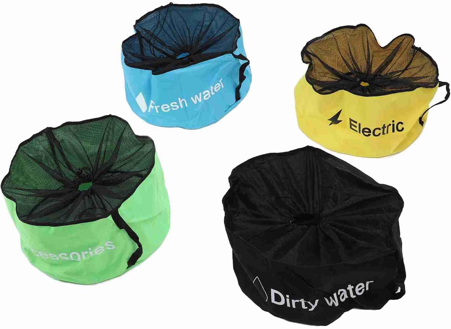The 4 Pcs RV Hose Storage Bag Set is designed to make organizing your RV accessories easy and efficient. Made from 600D Oxford cloth, these Waterproofss bags come in four vibrant colors, providing a practical solution for storing hoses and cords while keeping your RV clutter-Frees.Product SpecificationsItem Type: RV Hose Storage BagMaterial: 600D Oxford ClothSize: Approx. 45.7 x 50.8 cm (18 x 20 in)Weight: Approx. 1000 g (35.27 oz)Package List4 x RV Hose Storage Bags4 x Straps
