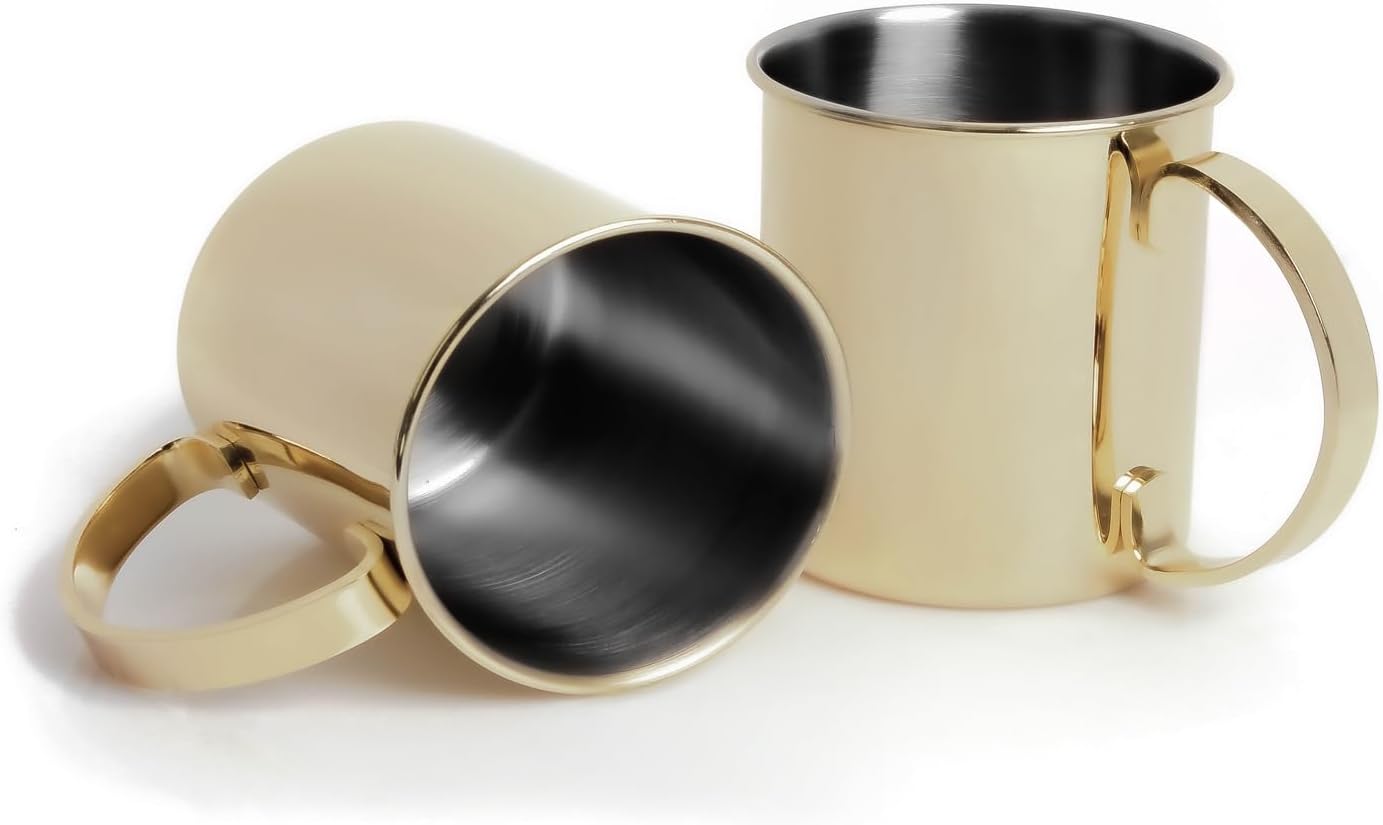 Chic and highly decorative Moscow Mule copper mug set by Echtwerk made from high quality stainless steel. Highly polished interior and exterior. Hand wash recommended. Shatterproof and taste-neutral stainless steel cups. Keep the drinks cool for a long time. Tasteless and durable. No taste as well as odourless, food-safe Moscow Mule cups. Suitable for long drinks as well as other drinks such as juice or lemonade. A perfect addition to any cocktail lover. Give your home bar a new shine with the copper mug set from Echtwerk. The perfect birthday gift for family and friends thanks to a stylish gift box. Dimensions: 4.5 x 4.45 inches, 1000 ml.