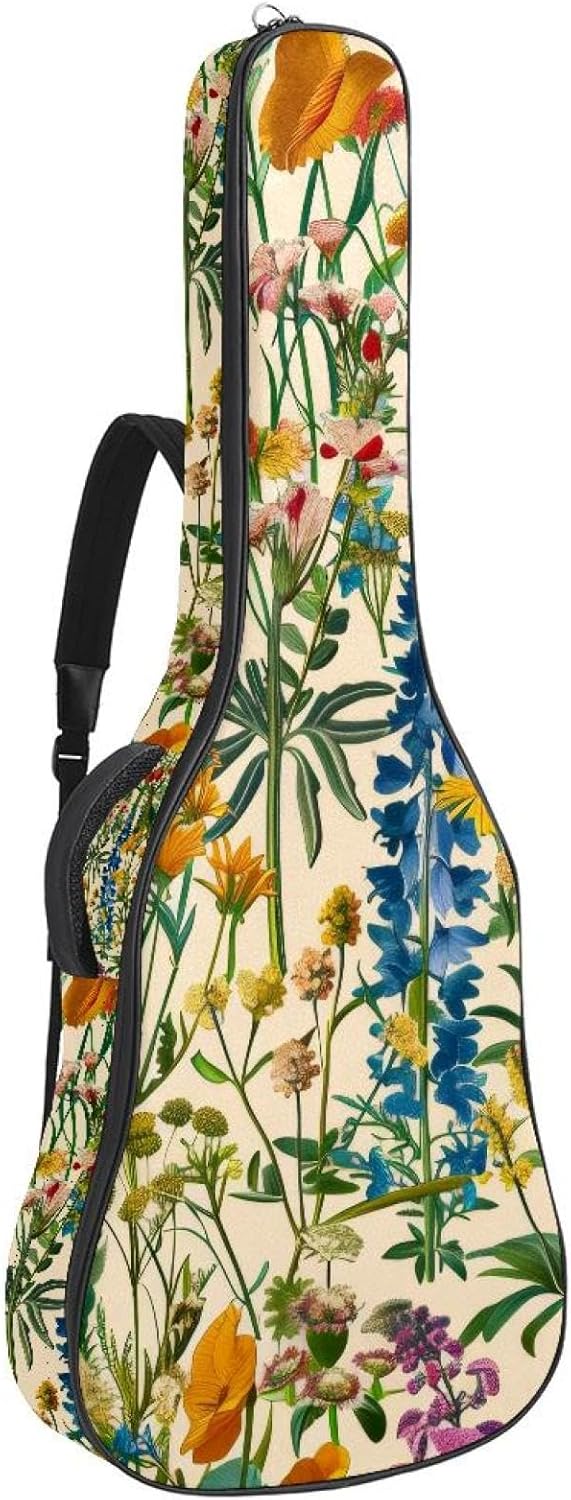 Give your valuable guitar the premium protection it deserves. Our Cute Printed Guitar Gig Bag is engineered for the modern musician who demands both security and convenience. Whether you're heading to a gig, a practice session, or on a short trip, this bag ensures your instrument arrives in perfect condition, ready to play.Constructed from durable, waterproof Oxford cloth, this bag stands up to the elements and the test of time. The interior is a sanctuary for your guitar, featuring ultra-thick padded sidewalls and a soft, anti-scratch lining that cradles your instrument, preventing scratches and damage. The heavy-duty rubber base acts as a shield against everyday bumps and allows for stable placement on any surface.Organization is effortless with multiple dedicated compartments. Two main storage pockets keep all your essential accessories—like a foldable music stand, tuner, picks, cables, and extra strings—neatly sorted and easily accessible. Never fumble for your tablet or sheet music again; the specially designed back pocket keeps them safe and separate.For a perfect, secure fit, the adjustable neck support and internal Velcro strap ensure your guitar does not shift around inside the bag, providing peace of mind with every carry.Care Instructions: To preserve the quality and appearance of your gig bag, please do not machine wash. Simply wipe clean with a damp cloth to remove any dirt or stains.