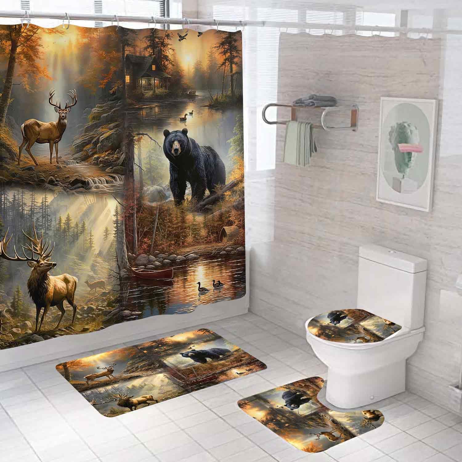 đWHAT WILL YOU GET?1PIECE SHOWER CURTAIN3 PIECES BATH RUGS12 PIECES SHOWER CURTAIN HOOKSđWHY CHOOSE "OLEBETY" ?PROFESSION: We have our own factory and R & D team with more than 15 years of professional experience. PREMIUM MATERIALS: OLEBETY shower curtain and rug set uses imported high grade materials. We strive to provide you with the ultimate comfort in everyday life.CRAFTSMANSHIP: Each product is sewn stitch by stitch by our skilled workers.đSPECIFICATIONSShower Curtain: 72 x 72 INCHRectangle Bath Rug: 18 x 30 INCHU Shaped Rug: 16 x 20 INCHToilet Lid Cover Rug: 15 x 18 INCHđFEATURESWonderful GiftsSoft Shower CurtainFabric Shower CurtainWaterproof Shower CurtainMachine Washable Shower CurtainSoft RugsNon-slip RugsAdvanced HD PrintingDurableđ ATTENTIONShower curtain is machine washable. Wash it in water below 80â. Ironing within 200âIt is recommended to wash rugs by hand. Ironing within 200âDue to manual measurement, please allow 1-2cm deviation.Colors may vary slightly depending on the computer's picture resolution and display settings.