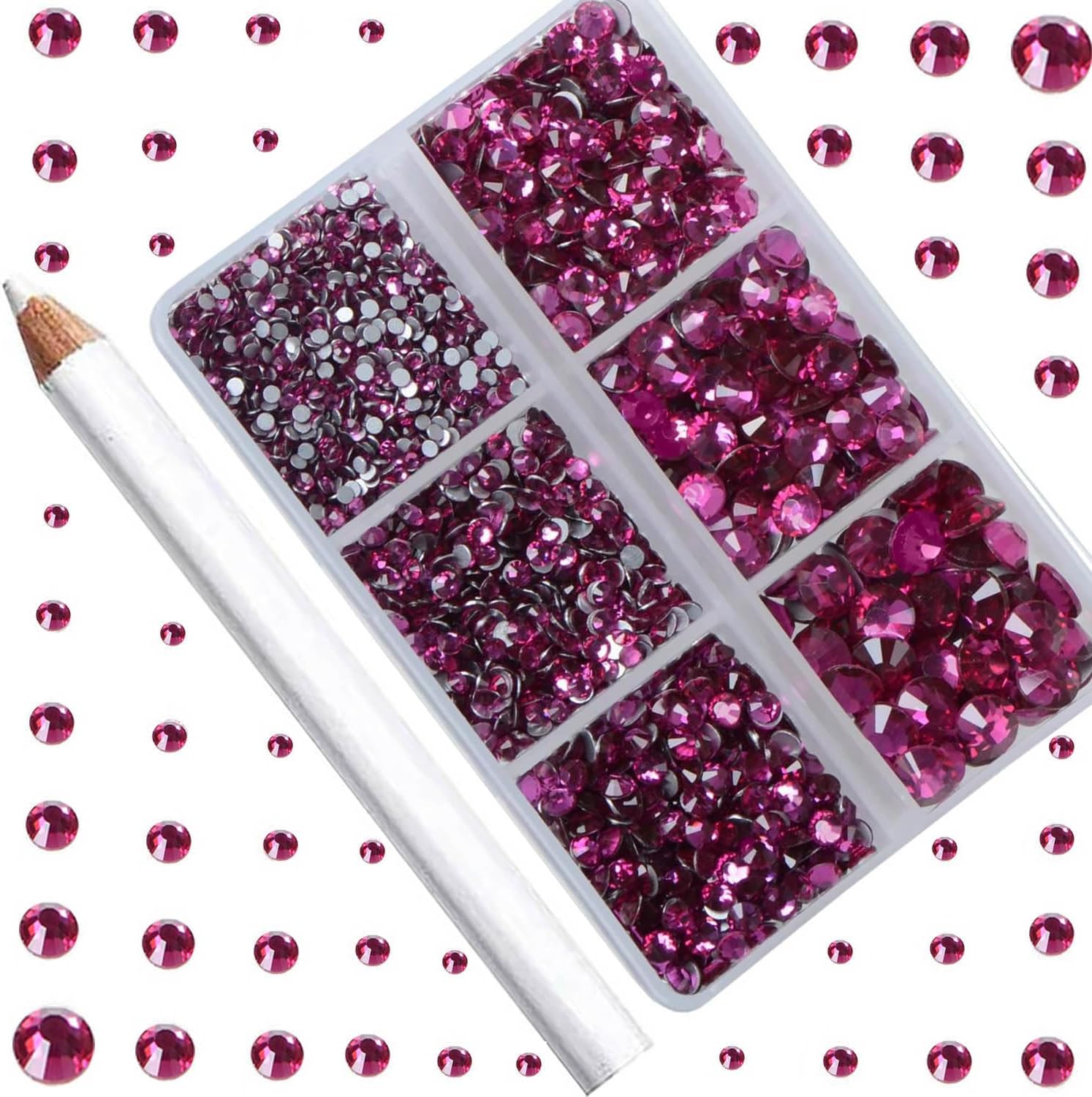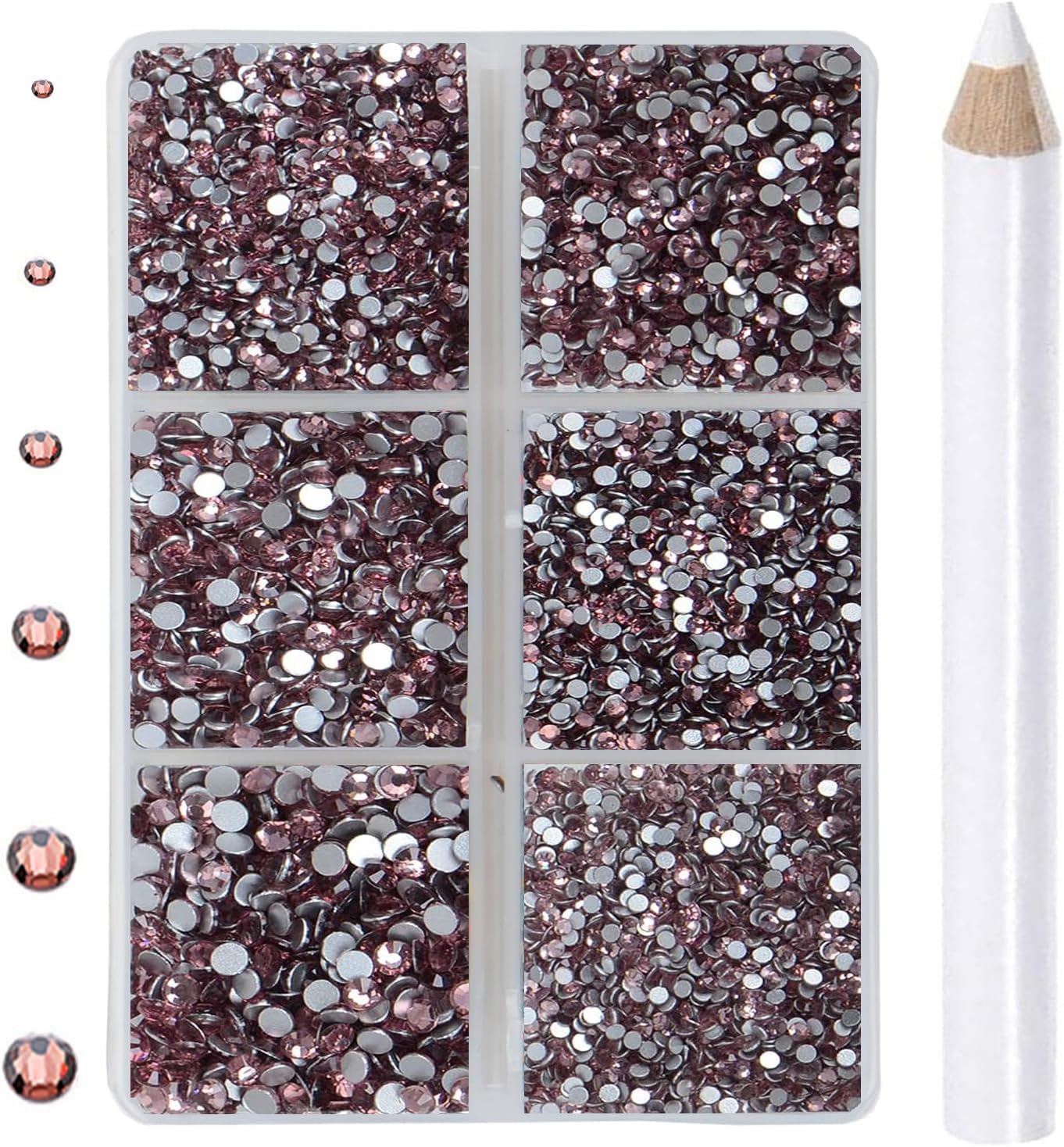 Package includes: 5000pcs Lt. Rose Glue on Quality Glass Flatback rhinestones bulk in 6 sizes SS4~SS30(1.5~6.6mm), with good quality picker wax pencil.Great Quality and well polished Glass Flatback Rhinestones Round Lt. Rose Gems.