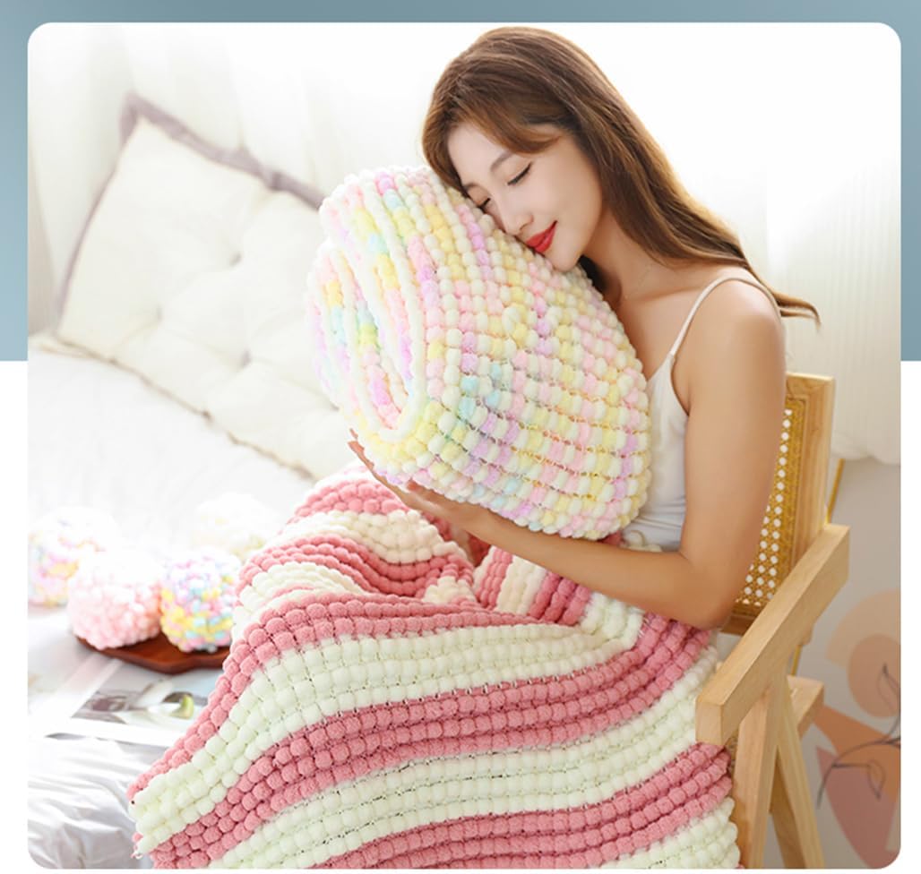 Our Fun pom pom yarn have 3 size of pom in my shop(Small size, Mediun size, BIg size). this is made with Small poms! it is a new style yarn in market, very popular. watch the pom poms fall into neat rows as you stitch. Great for mat,scarves, rugs, wall hangings and home decor projects. Great for wrapping letters or a wreath form or just hang it for a colorful garland. Easy to work with, this fun yarn will be your new favorite. Available in both solids and prints, many colors for your choose, the possibilities are endless.