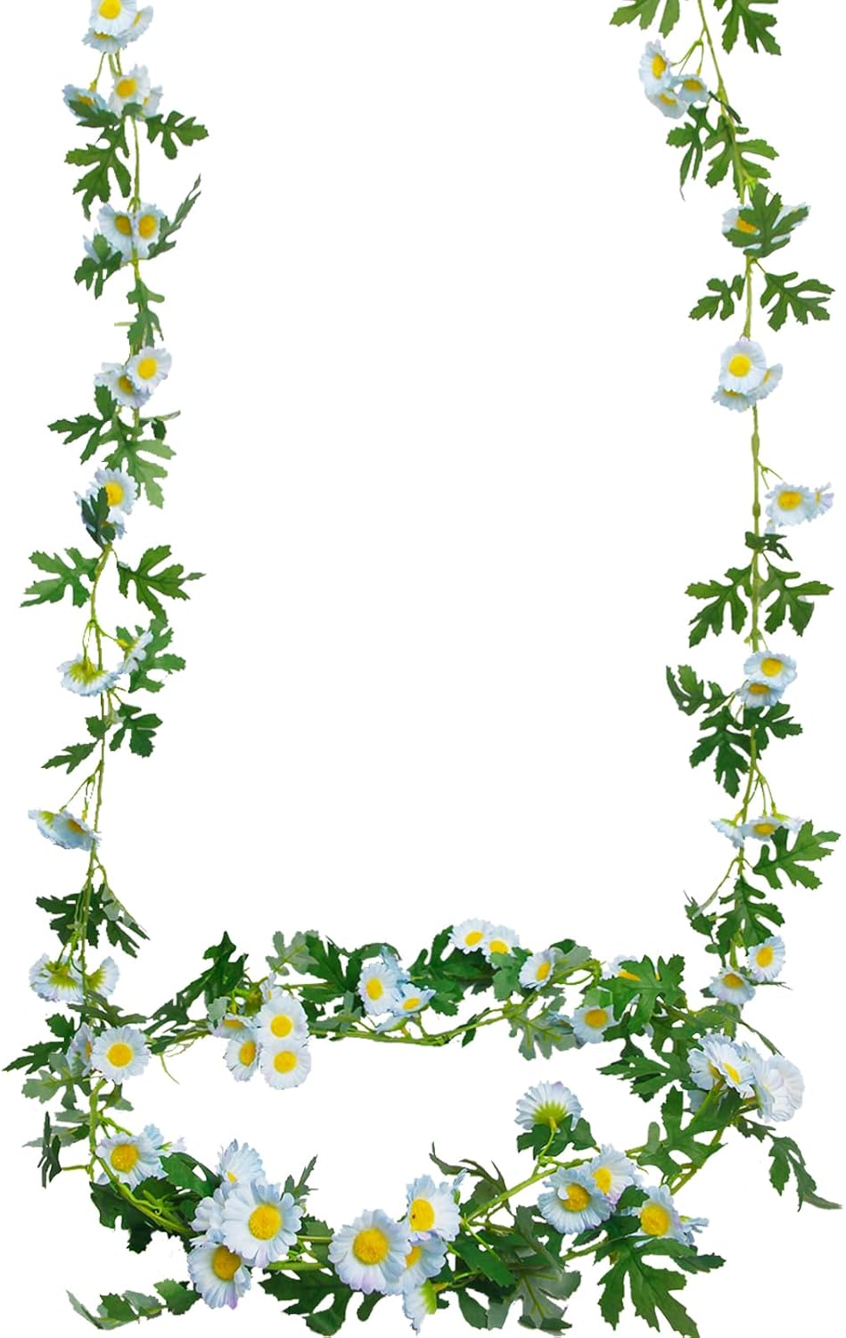 Brighten up your indoor and outdoor spaces with our delicate and lovely daisy garland. The stunning decorative garland features vivid and lovely silk daisy wildflowers, carefully crafted to add a touch of natural beauty to any setting. Perfect for hanging on fences, gazebos, wedding arches, stair railings or tabletops. Realistic and elegant design The lovely daisy flowers and lush green leaves create a fresh and natural atmosphere without the fuss of real flower decorations. Durable and weather-resistant Made of high-quality silk and plastic, it can withstand sun, rain and wind, making it an ideal choice for outdoor use. Versatile use Perfect for weddings, parties, home decoration, patios, porches or commercial spaces such as cafes and event venues. Easy to arrange The flexible wire stems allow you to easily bend and shape the garland to fit any space. Easy to maintain No watering or pruning required - just gently fluff and display for instant charm! Ideal use Wedding and event decorations: Create a charming backdrop, aisle rug or table centerpiece. Home and Garden Beautification: Decorate your front porch, balcony or garden fence with lush greenery. Seasonal and Holiday Decorations: Perfect for spring and summer or year-round elegance. Specifications: Color: blue, rose red, orange, white, pink and yellow Size: Each strip is 5.9 ft/180cm long, total length is 11.8 ft/3.6m Material: Silk and Plastic Package Contents: 2 PCS Artificial Garland Daisy Vines