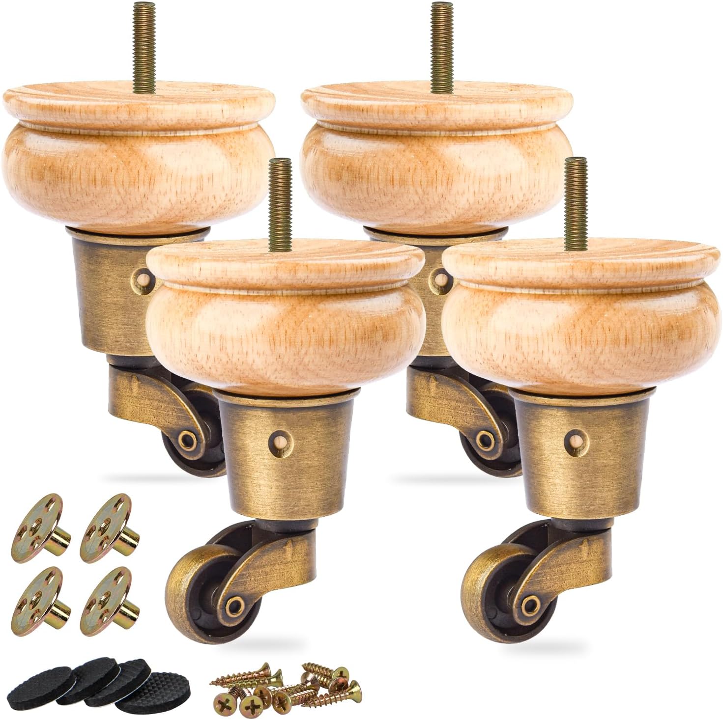 Specification -Condition: 100% New -Material: Eucalyptus Installation -1.Position the T-nuts near the furniture’s corners. -2.Drill 4 holes through the base if there is no existing ones. -3.Tap the T-nuts into the holes with a hammer. -4.Twist the legs onto the T-nuts until they are even with the furniture. Note: -100% natural wood, so it is normal that there is a little deviation in the size, pattern and color of the feet. -Due to the effect of light and monitor, the color may be slightly different from the actual product. -Please allow 1-2mm error due to manual measurement. -Wooden legs are cabinet / table replacements, NOT as a craft product. Due to the natural material, they are not 100% perfect, slightly imperfect can NOT be avoided, please kindly understand. Package included: 4 x wooden legs 4 x caster wheels 4 x mounting plates a set of screws