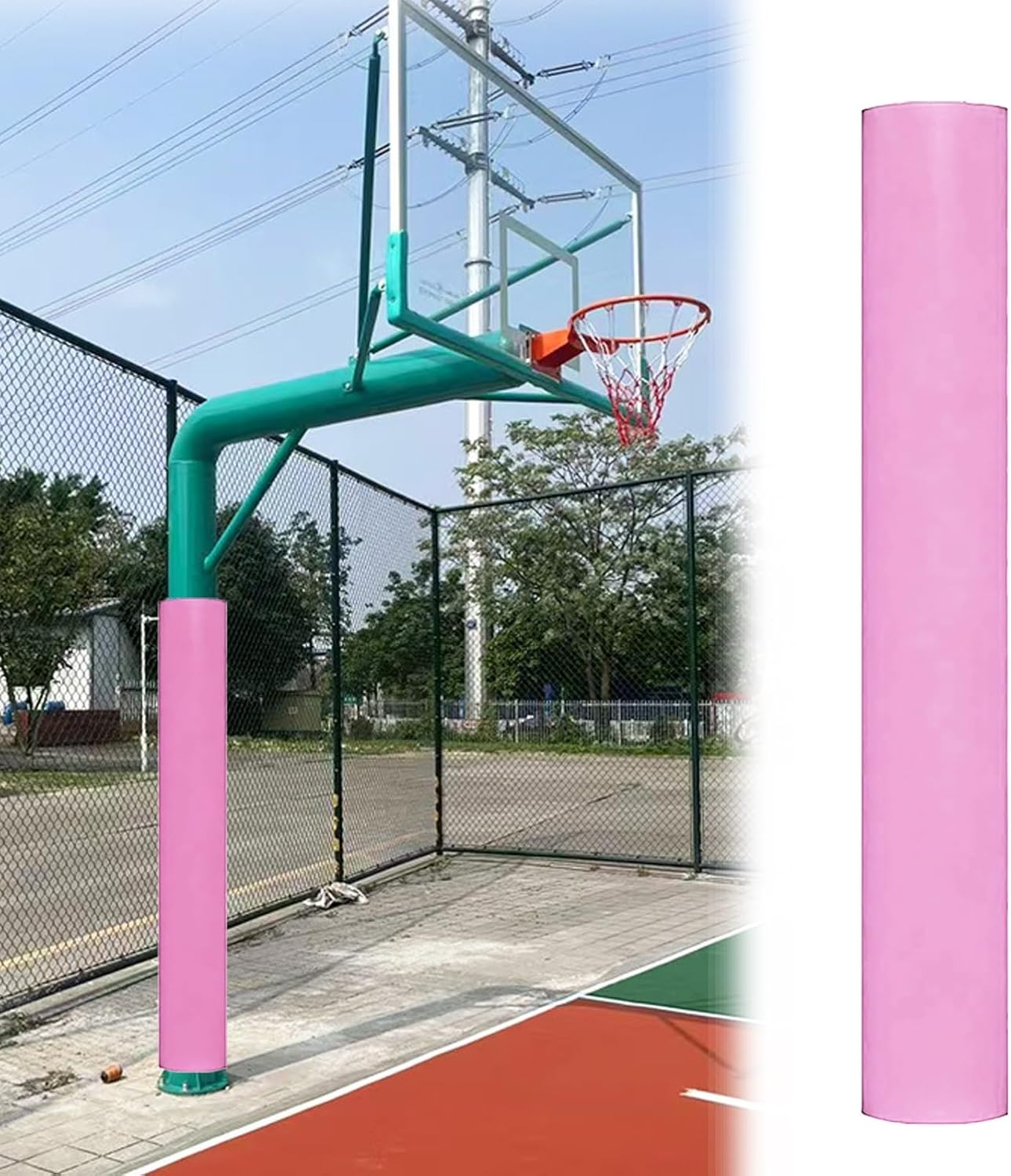 Keep your family, athletes, and vehicles safe with our Round Basketball Pole Padding Protector—engineered for maximum safety, durability, and ease of use. Standing 71 inches (180 cm) tall and padded with 0.8 inches (2 cm) of high-resilience foam, this universal column cover delivers reliable cushioning against accidental impacts in both high-traffic play zones and everyday living spaces.Crafted with a heavy-duty, waterproof PU leather shell and filled with dense, shock-absorbing sponge, our pole pad withstands sun, rain, snow, and daily wear—making it perfect for outdoor basketball courts, garages, basements, playgrounds, fitness centers, and even EV charging stations. The vibrant color options ensure high visibility while maintaining a sleek, professional look.Thanks to its full-length self-adhesive closure system, installation is effortless: simply wrap, press, and secure—no tools. The snug fit stays put even during vigorous sports, yet it’s easily removable for cleaning or seasonal storage. Plus, if your pole falls outside the standard diameter range (4.5"–8.6"), we offer custom height, diameter, and color options—just message us your specs!Whether you're safeguarding a child’s play area, protecting your car from garage pole dings, or upgrading safety at a commercial gym, this basketball pole protector combines smart design.