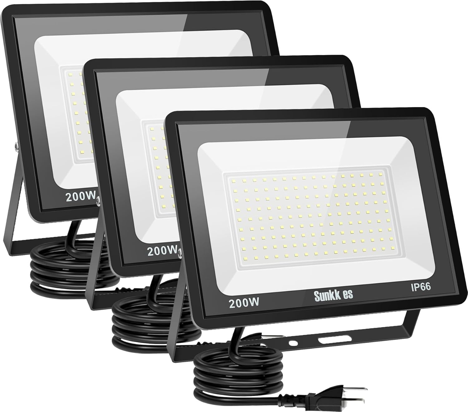 Sunkkes Excellent LED stadium lights for customers Specification: Type of Bulb: High Quality LED Chips Wattage: 800W Power Factor: 0.95 CRI: >85Ra Lumens: 80,000lm Waterproof: IP66 Material: Aluminum + Glass Beam angle: 120° Color Temperature: 6000K Daylight White Input Voltage: 85~265V AC , 50/60 Hz Cable Cord length: 0.5m / 20in Lifetime(L70 Standard): >50,000 hours Working Temperature: -25℃ ~ 45℃ Features: Replace 4000W traditional halogen bulb by 800W LED and save 85%-90% on electricity bill of lighting. Durable die-casting aluminum structure, high light transmittance, tempered glass with excellent heat dissipation for high conductivity and stable performance. IP66 waterproof for wet locations or bad weather. Resists Rust, Corrosion, Cracking. Outstanding corrosion protection. Outstanding thermal solution suit for usage in commercial application and provide wide angle brightness. Save energy and money. Energy-efficient LED technology lowers energy usage. Emits over 80000lm for led area light. Instant-On. 50,000hrs lifespan. No flicker. No radiation, no lead , mercury and other pollution elements. Widely Application. Perfect for Yard, Garage, Driveway, Workshop, Warehouse, Gas Stations, Vessel, Stadiums, Sport courts, Parking lots, Bridge, Building exterior wall, Squares, Billboards Rural Areas, Gardens, Backyards, Warehouse, Street, etc How to Install? 1.Fix the housing to the desired position. 2.Adjust an appropriate beam angle and then fasten screws. 3.Connect the brown wire to house Live/Hot wire(black), blue to house Neutral wire(white) and yellow/green to house Ground/Earth wire(green), and power on.