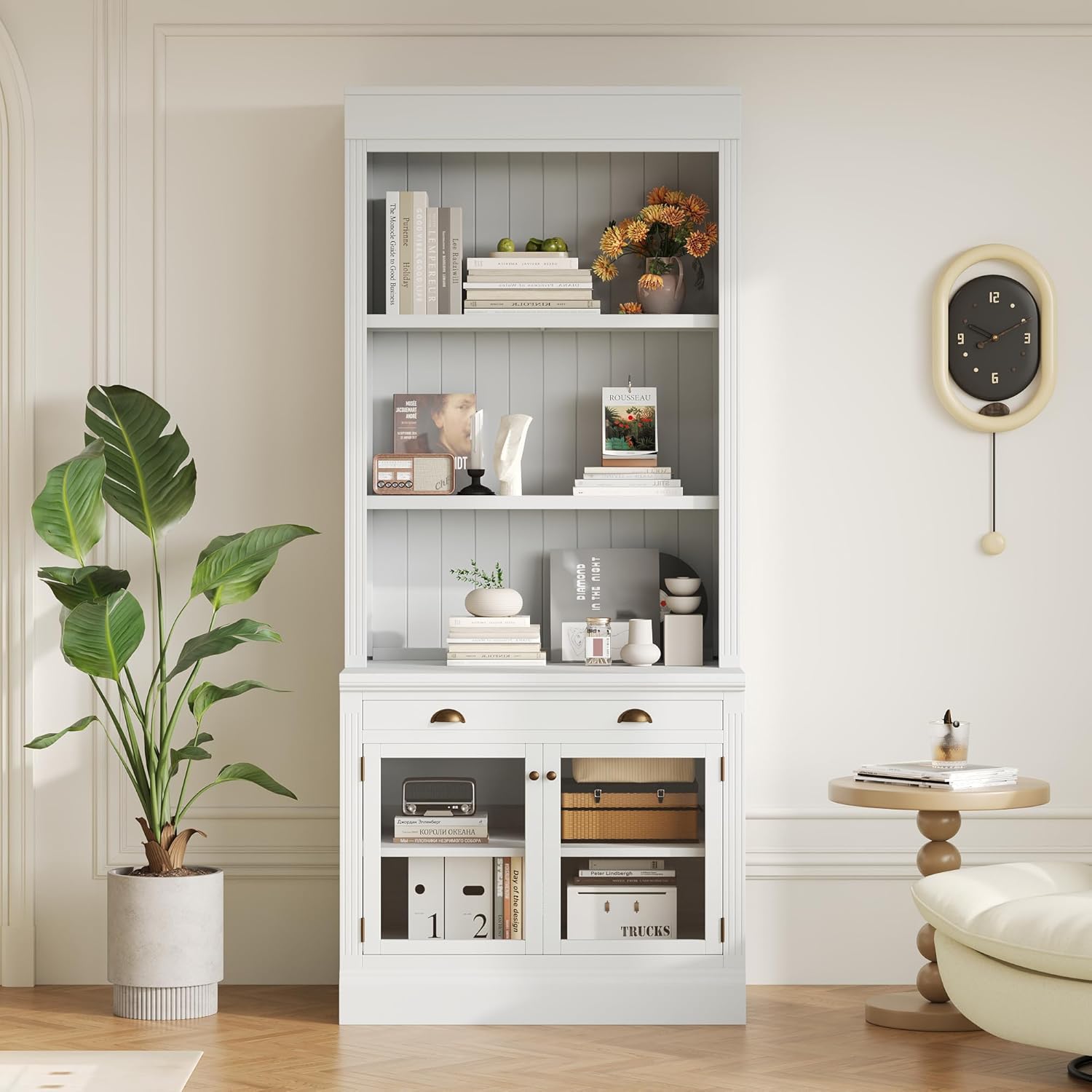 Abandoning the complex decoration, our bookcase suite featuring simple lines that perfectly highlight the fusion of pastoral and modern style. Whether you place it in your living room, home office, or bedroom, this suite provide immense aesthetic versatility.