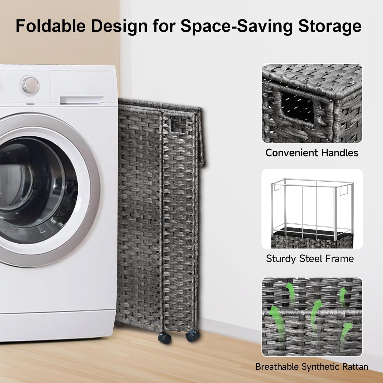 | Included Components | 1 x Laundry Hamper with lid, 2 x Liner Bags, 3 x Mesh Bags, 4 x Silicone Pads, 4 x Wheels |