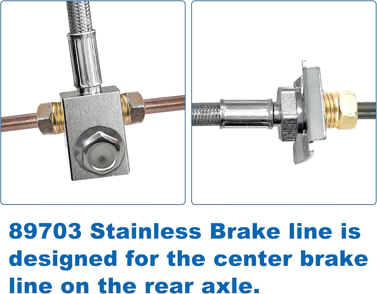 The 89715 lengthened stainless steel brake line fits back and forth.Stainless steel material.It is very suitable for people who want to replace the brake line with poor performance or aging.