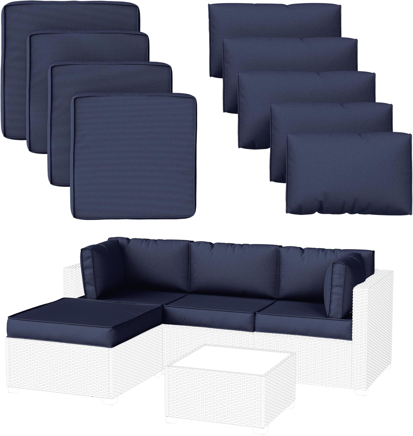 9 Piece Outdoor Cushion Cover ☺🍓 Feature 🍓➀anti-fading: Whether it's the sun or other inclement weather, our 9-piece bushings are always more durable and UV resistant than regular slipcovers➁Thickness: If you look at the picture carefully, you can find that the "Pakunoda" cloth cover even across the screen, is thick and safe, it is not as thin as other cloth covers, and it is safe and breathable➂ Firm Position: Tethered backrest cover and non-slip latex dots fix the direction, not easy to be blown away by the wind🍧 Product size 🍧1 large cushion cover (29'' L x 29'' W x 3''H)3 Cushion Covers (25.6'' L x 25.6'' W x 3'' H)3 cushion covers (25.6'' L x 12.5'' W x 4'' H)2 short cushion covers (21.6'' L x 12.5'' W x 4''H)🥨 Note * Not a flat size, but a size that can accommodate the mat🍄 Some points 🍄➀The product only includes sofa covers, not cushions➁Due to differences in display and light, colors may be slightly inaccurate. Please refer to the actual product for details, Image for reference only.The dimensions are marked to accommodate the padding and differ slightly from the flat dimensions of the covers. (The tightened edges cannot be used as a reference for holding size, so we have marked the size that will hold the insert for your easy reference)➂Our pillowcases are versatile and suitable for any type of cushion (cushion size and cloth cover)➃Pakunoda yarn-dyed polyester fabric with light resistance for over 1000 hours in sunlight.Other pillowcases fade quickly in the sun, and this specially designed technology makes our pillowcases stain and dust resistant. Tired of the stains left by hard-to-clean liquids in all sorts of unexpected situations?Use it and restore it with just a wipe or simple clean!