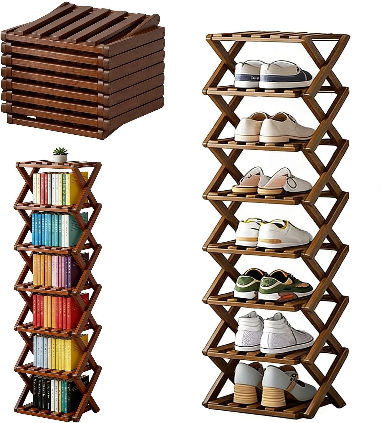 9-Tier Foldable Bamboo Shoe Rack, No-Tool Assembly Narrow Wooden Shelf for Entryway, Tall Vertical Shoe Storage Organizer with Collapsible Design for Small SpacesFeatures:No assembly required: unfolds and locks into place in secondsSpace-saving design: tall, slim profile, ideal for small spacesDurable bamboo: sturdy, stable and eco-friendlyVersatile storage: perfect for shoes, books and other itemsEasy to clean: simply wipe with a damp clothSpecifications:Dimensions: 25 x 25 cm / 9.8 x 9.8 inchesHeight: 20–165 cm / 7.9–65 inches (varies with number of shelves)Weight: 0.55 / 0.85 / 1.1 / 1.35 / 1.65 / 1.95 / 2.2 / 2.6 / 2.9 kgColour: Brown, NaturalMaterial: BambooNumber of shelves: 2/3/4/5/6/7/8/9Packaging:1 x ready-to-assemble bamboo shelving unitNotes:1. Please note that dimensions may vary slightly due to manual measurement; thank you for your understanding.2. Please note that product colours in the images may not be accurately represented due to differences in monitor settings and lighting conditions; thank you for your understanding.