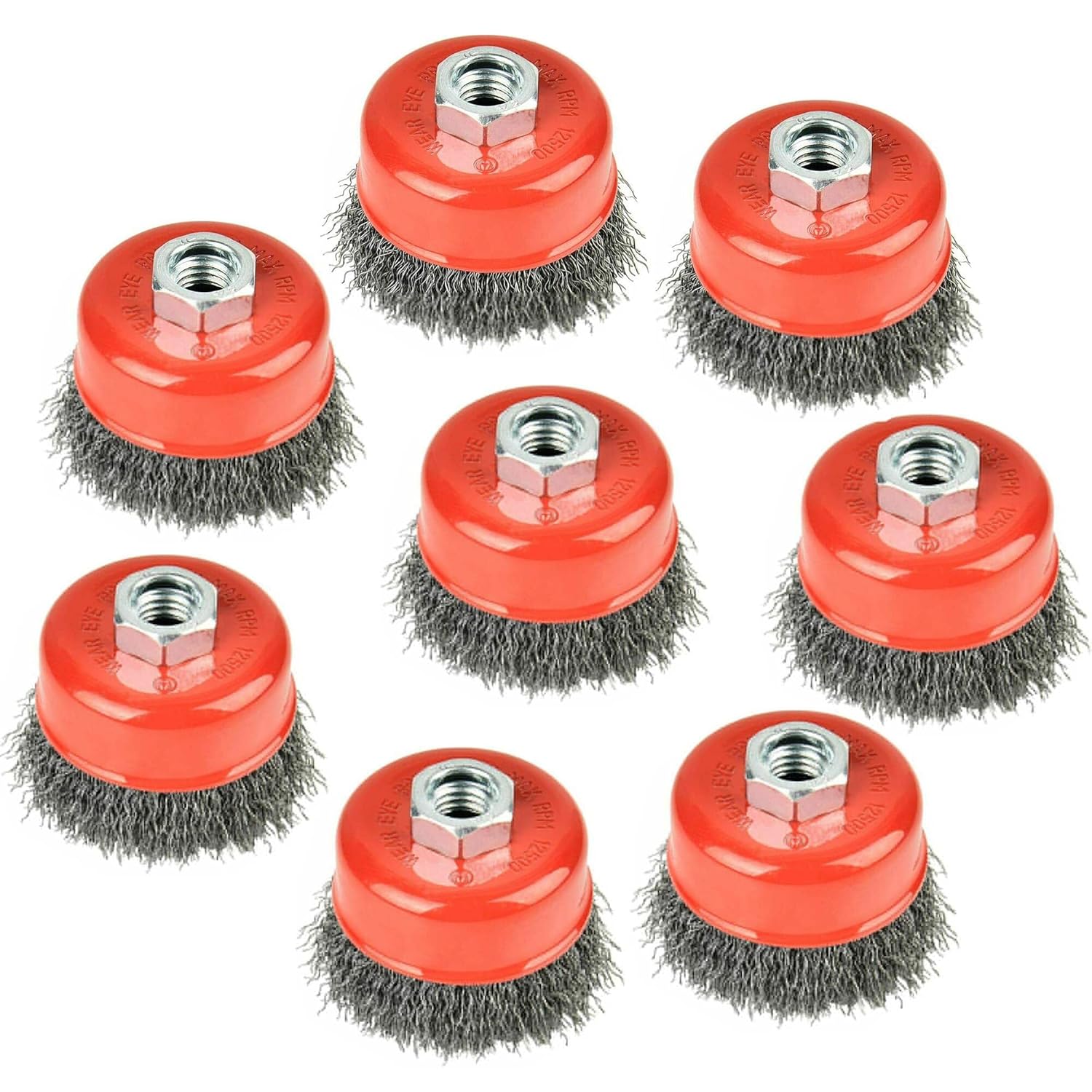 20 Pack 3 Inch Coarse Crimped Wire Cup Brush for Angle Grinder with 5/8 Inch-11 Threaded Arbor - 0.014 Inch Carbon Steel Wire -Light Duty Conditioning for Metals