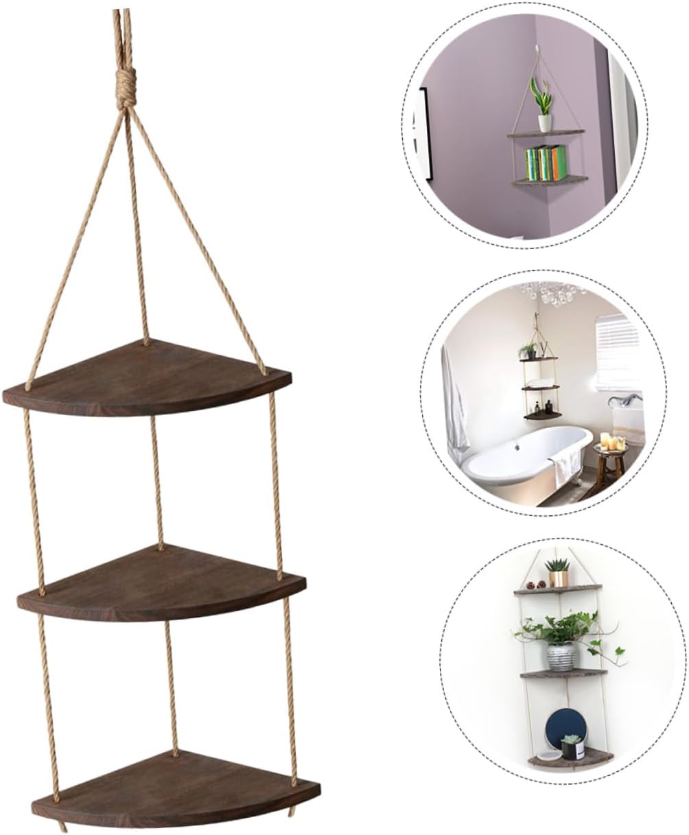 Package Include 1 x corner storage rack Characteristics -Color: Brown corner wall shelf -Size: About 99.00X28.00X28.00cm/38.91X11.00X11.00inch wall hanging shelves -Material: Wood, rope wall hanging shelf - Can be hung on the wall corner, make full use of room space hanging shelf for corner. - The shelf is nicely decorated for your kitchen, living room, bedroom or office corner wall shelves. - Though it is simple , it's so practical when you use it wall mounted storage shelves. - Better display a variety of things, such as plants, crafts, photos and more corner wall hanging shelves. - Made of material with stable performance and corner organizer.Goods Descriptioncorner storage organizer Are you looking practical corner storage rack? Are you in search of a sturdy, trustworthy tool that can be used to store your household supplies? , ! Our storage rack, made of material, must meet you needs.corner organizer It can help you make your home clean and tidy