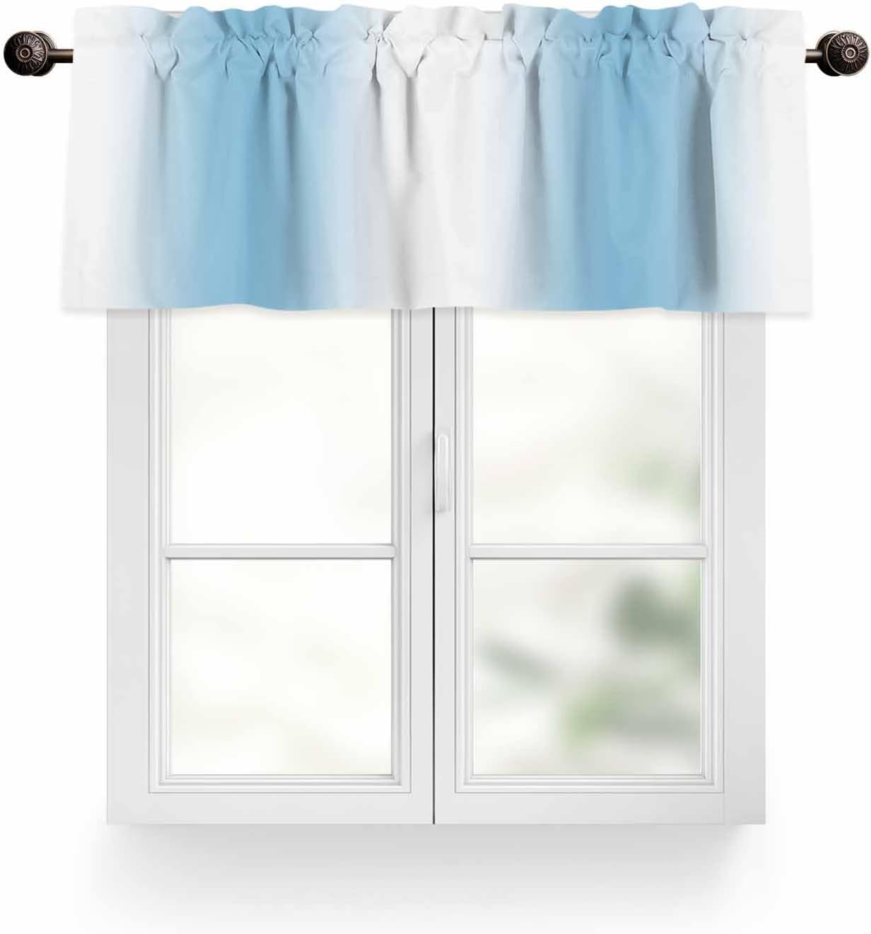Rod Pocket Curtain Valance: This rod pocket curtain valance made of 100% polyester,decor the top of any window in your home. Reduce light in your home for privacy. Decorative Kitchen Valance: As the beautiful abstract art blue white gradient marble texture pattern,the window valance for your kitchen,living room,bedroom,laundry room,kids and dorm rooms.Matches well with various color palettes of curtains,rugs,furniture and any other home decor accent accessories. Suitable for Multiple Scenarios: Living Room, Bedroom, Door Head, Office, Kitchen and more places you can find. Easy Care: Machine wash in cold,tumble dry low.Do not bleach. Package: Package includes 1 panel of valance curtain. Tier Curtains Size: 54x18in(137x45cm) 42x12in (107x30cm) 42x18in (107x45cm) 60x18in (152x45cm) NOTE: Please allow some deviation due to manumal measurement.