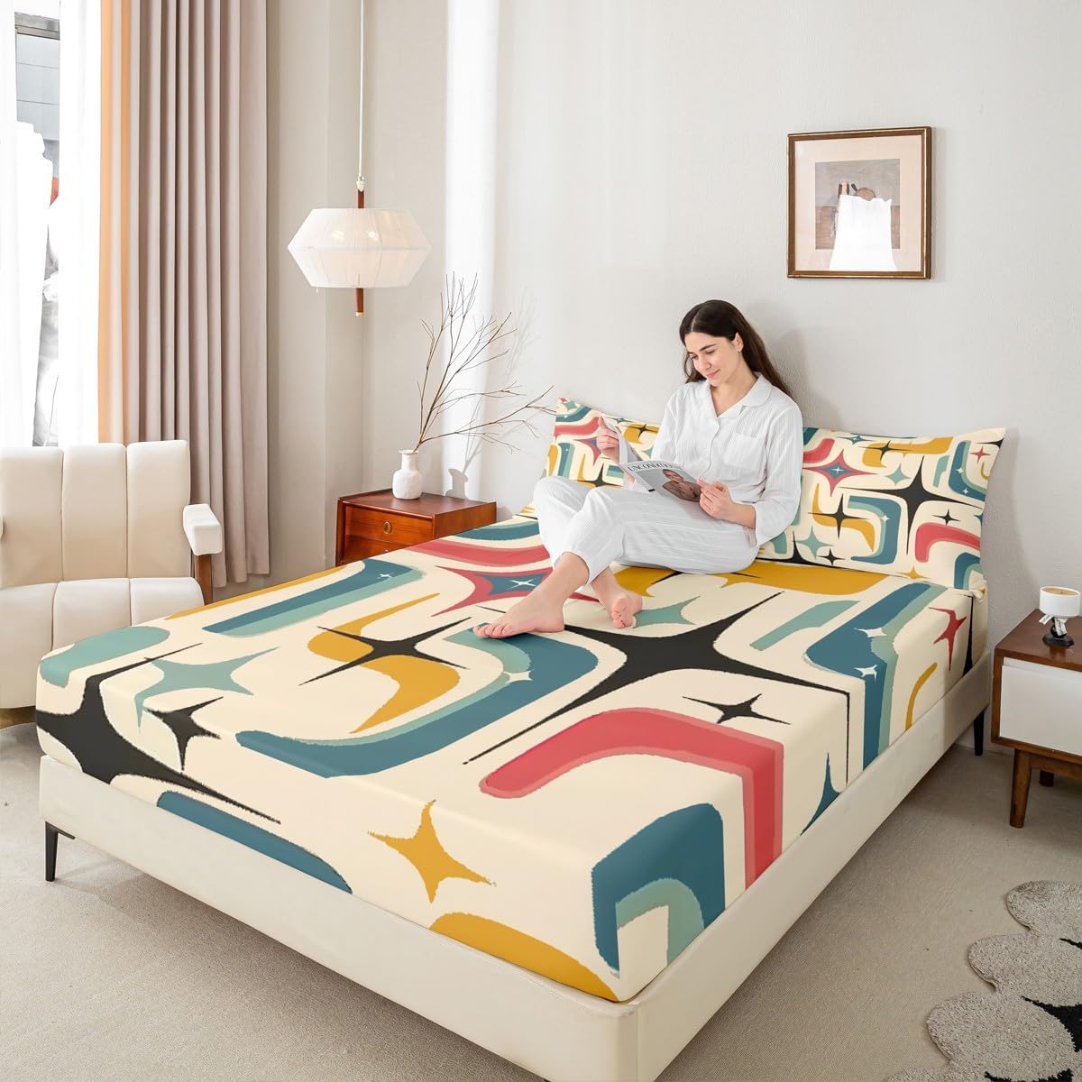 The Modern Fitted Sheet Set Pattern Bedding Set,Simply Decorating your Rooms You Want,Bringing You Fresh Feel for Year Round Use. Made From Polyester Microfiber Size Information: Twin Size: 2Pcs Fitted Sheet Set:1 Fitted Sheet 39"Wx75"Lx16"H(99x190x41cm), 1 Pillowcase 20"x30"(51X75cm). Full Size: 3Pcs Fitted Sheet Set:1 Fitted Sheet 54"Wx75"Lx16"H(137x191x41cm), 2 Pillowcase 20"x30"(51x75cm). Queen Size: 3Pcs Fitted Sheet Set:1 Fitted Sheet 60"Wx80"Lx16"H(152x203x41cm), 2 Pillowcase 20"x30"(51x75cm). : Personalize your Bedroom Vibrant prints and thoughtfully curated designs create a personalized bedroom retreat, supporting restful sleep in comfort With elasticity all around, this fitted sheet can firmly lock onto the mattress, making it suitable for various sleeping positions. Its all round package design ensures a smooth and flat surface. Coordinating envelope pillowcase that is easy to replace, saving time and effort, while maintaining the overall aesthetic appeal. : Washing Instructions Machine Wash Separately In Cold Water,Hang Dry,Do Not Bleach. : Occasion The Soft Fitted Sheet Bedding Sets Designed for Kids,Adult,Men,Women,Teens,Family and Friends.