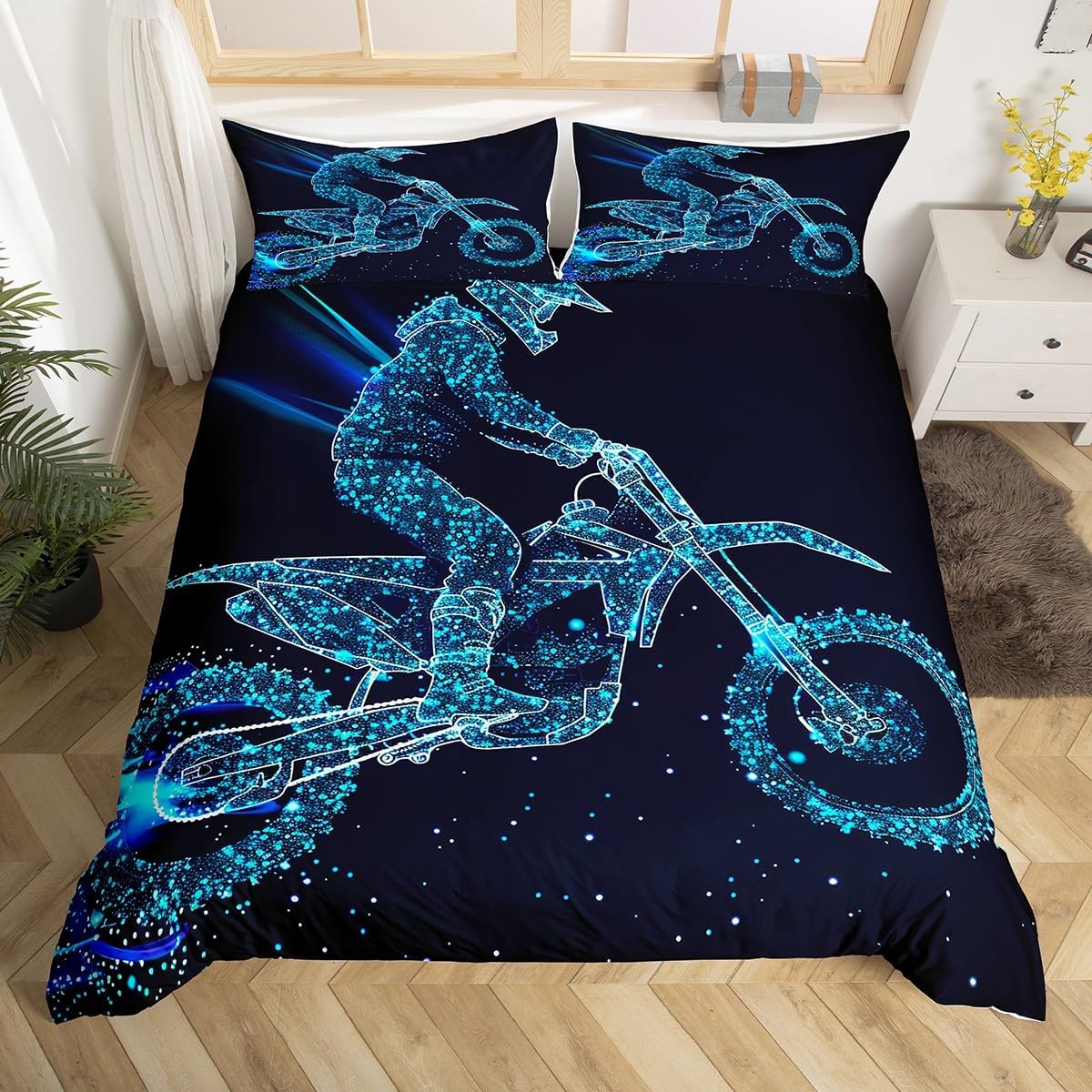 Package Include: Duvet Cover, Pillowcase. High Quality Duvet Cover Set Pattern Bedding Set, simply decorating your rooms any time you want, bringing you fresh feel for year round use. Polyester: Made from polyester microfiber, the sheet set offers strength, natural resistance to shrinking and a noticeably soft hand feel. Size Information: Toddler size 2pcs:1 x Duvet Cover 42" x 58" and 1 x pillowcase 20" x 30".Without Comforter. Twin size 2pcs: 1 x Duvet Cover 68" x 90" and 1 x pillowcase 20" x 30".Without Comforter. Full size 3pcs: 1 x Duvet Cover 80" x 90" and 2 x pillowcase 20" x 30".Without Comforter. Queen size 3pcs: 1 x Duvet Cover 90" x 90" and 2 x pillowcase 20" x 30".Without Comforter. King size 3pcs: 1 x Duvet Cover 104" x 90" and 2 x pillowcase 20" x 36".Without Comforter. Personalize your bedroom: Beautiful design and colorful print, makes your bedroom unique and brings you a wonderful dream. Washing instructions: Machine wash separately in cold water,hang dry, do not bleach. Notes: This product does not include a comforter. Due to the light and screen setting difference, the item's color may be slightly different from the pictures. Due to manual measurement, there may be an error of 1 to 3 centimeters.